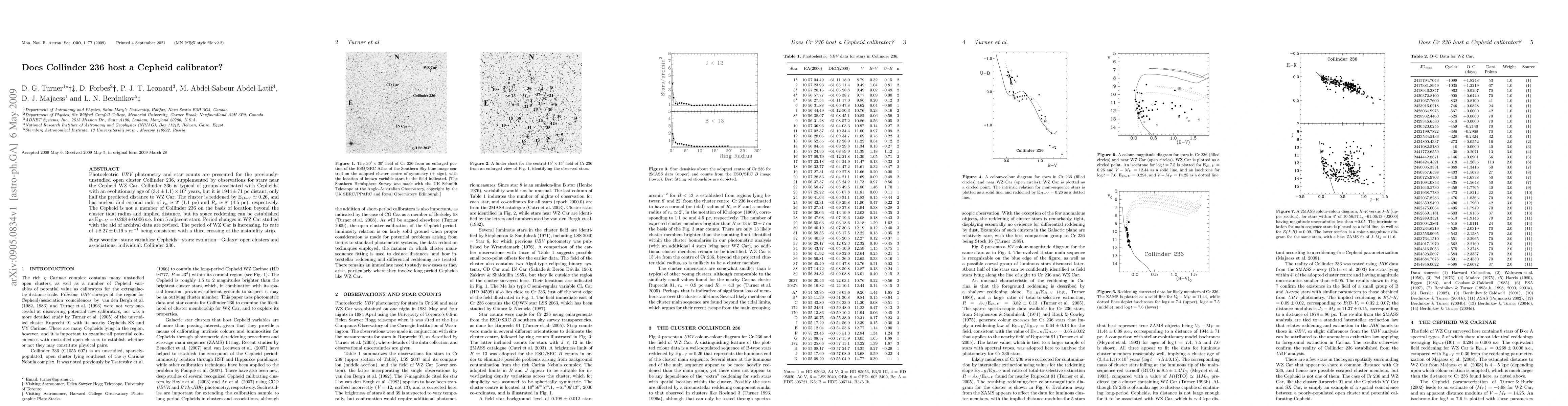 Photoelectric UBV photometry and star counts are presented for the previously unstudied open cluster Collinder 236, supplemented by observations for stars near the Cepheid WZ Car. Collinder 236 is typical of groups associated with Cepheids, with an evolutionary age of (3.4+-1.1)x10^7 years, but it is 1944+-71 pc distant, only half the predicted distance to WZ Car. The cluster is reddened by E(B-V)~0.26, and has nuclear and coronal radii of rn~2 arcmin (1.1 pc) and Rc~8 arcmin (4.5 pc), respectively. The Cepheid is not a member of Collinder 236 on the basis of location beyond the cluster tidal radius and implied distance, but its space reddening can be established as E(B-V)=0.268+-0.006 s.e. from 5 adjacent stars. Period changes in WZ Car studied with the aid of archival data are revised. The period of WZ Car is increasing, its rate of +8.27+-0.19 s yr^(-1) being consistent with a third crossing of the instability strip.