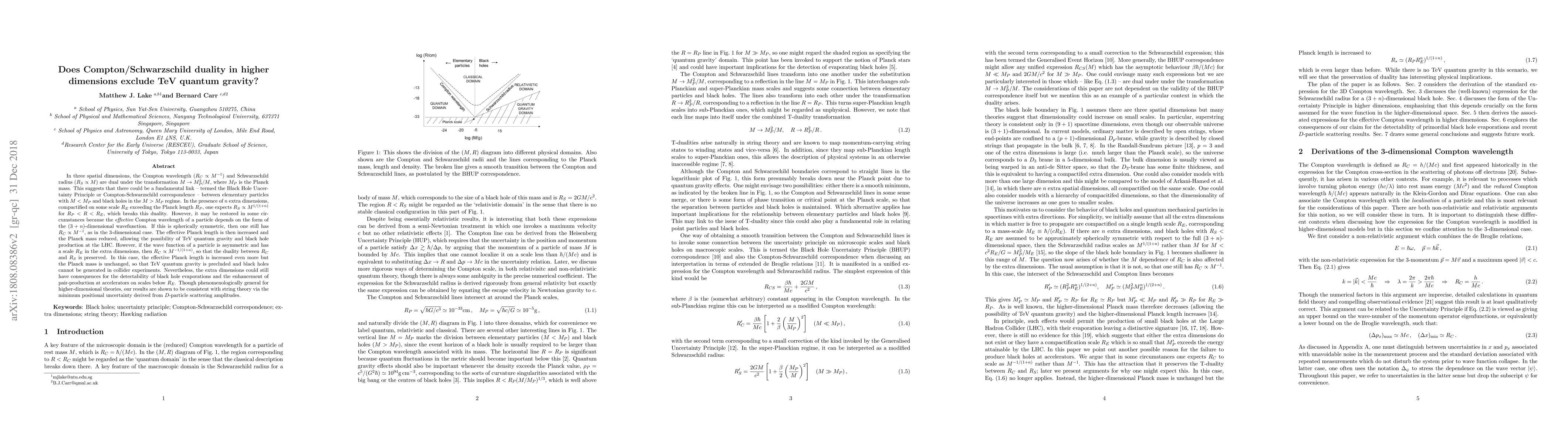 This paper explores the Compton/Schwarzschild duality in higher dimensions and its implications for TeV quantum gravity, concluding that the duality's restoration hinges on the symmetry of the particle's wavefunction, allowing for either TeV quantum gravity or its exclusion based on the dimensional configuration.