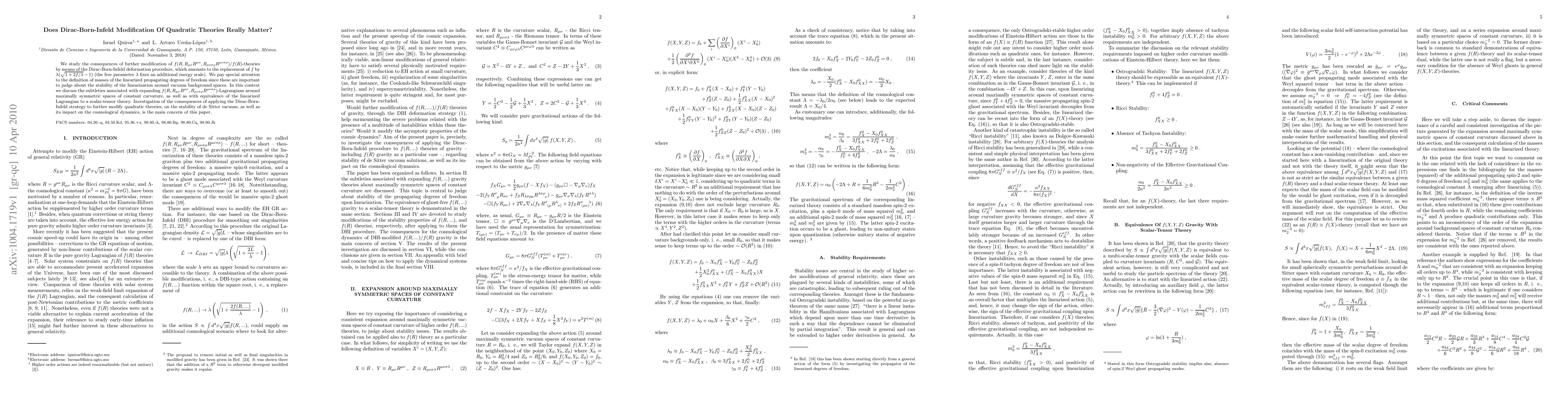 We study the consequences of further modification of $f(R,R_{\mu\nu} R^{\mu\nu}, R_{\mu\nu\sigma\rho} R^{\mu\nu\sigma\rho}) / f(R)$-theories by means of the Dirac-Born-Infeld deformation procedure, which amounts to the replacement of $f$ by $\lambda(\sqrt{1+2f/\lambda}-1)$ (the free parameter $\lambda$ fixes an additional energy scale). We pay special attention to the definition of masses of the linearized propagating degrees of freedom since these are important to judge about the stability of the linearization around vacuum background spaces. In this context we discuss the subtleties associated with expanding $f(R,R_{\mu\nu} R^{\mu\nu},R_{\mu\nu\sigma\rho} R^{\mu\nu\sigma\rho})$-Lagrangians around maximally symmetric spaces of constant curvature, as well as with equivalence of the linearized Lagrangian to a scalar-tensor theory. Investigation of the consequences of applying the Dirac-Born-Infeld strategy to further modify quadratic theories, on the stability of de Sitter vacuum, as well as its impact on the cosmological dynamics, is the main concern of this paper.