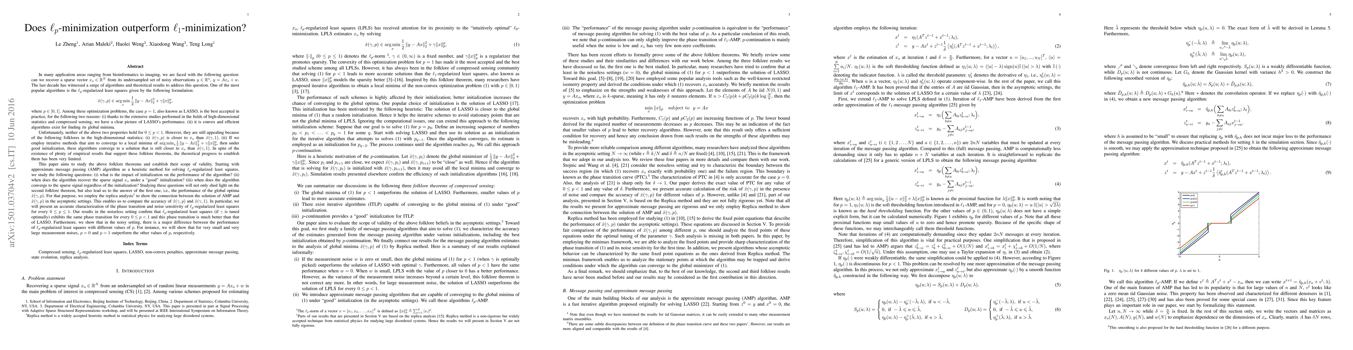 In many application areas we are faced with the following question: Can we recover a sparse vector $x_o \in \mathbb{R}^N$ from its undersampled set of noisy observations $y \in \mathbb{R}^n$, $y=A x_o+w$. The last decade has witnessed a surge of algorithms and theoretical results addressing this question. One of the most popular algorithms is the $\ell_p$-regularized least squares (LPLS) given by the following formulation: \[ \hat{x}(\gamma,p )\in \arg\min_x \frac{1}{2}\|y - Ax\|_2^2+\gamma\|x\|_p^p, \] where $p \in [0,1]$. Despite the non-convexity of these problems for $p<1$, they are still appealing because of the following folklores in compressed sensing: (i) $\hat{x}(\gamma,p )$ is closer to $x_o$ than $\hat{x}(\gamma,1)$. (ii) If we employ iterative methods that aim to converge to a local minima of LPLS, then under good initialization these algorithms converge to a solution that is closer to $x_o$ than $\hat{x}(\gamma,1)$. In spite of the existence of plenty of empirical results that support these folklore theorems, the theoretical progress to establish them has been very limited. This paper aims to study the above folklore theorems and establish their scope of validity. Starting with approximate message passing algorithm as a heuristic method for solving LPLS, we study the impact of initialization on the performance of AMP. Then, we employ the replica analysis to show the connection between the solution of AMP and $\hat{x}(\gamma, p)$ in the asymptotic settings. This enables us to compare the accuracy of $\hat{x}(\gamma,p)$ for $p \in [0,1]$. In particular, we will characterize the phase transition and noise sensitivity of LPLS for every $0\leq p\leq 1$ accurately. Our results in the noiseless setting confirm that LPLS exhibits the same phase transition for every $0\leq p <1$ and this phase transition is much higher than that of LASSO.