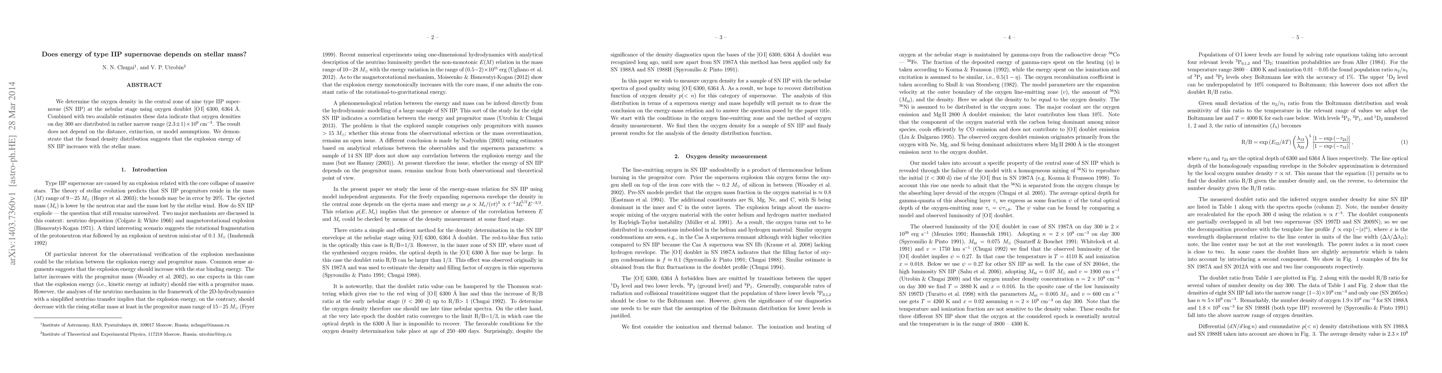 A study of type IIP supernovae found that their explosion energy increases with stellar mass, suggesting a link between the two. Oxygen density measurements indicate a narrow range of values, leading to this conclusion.