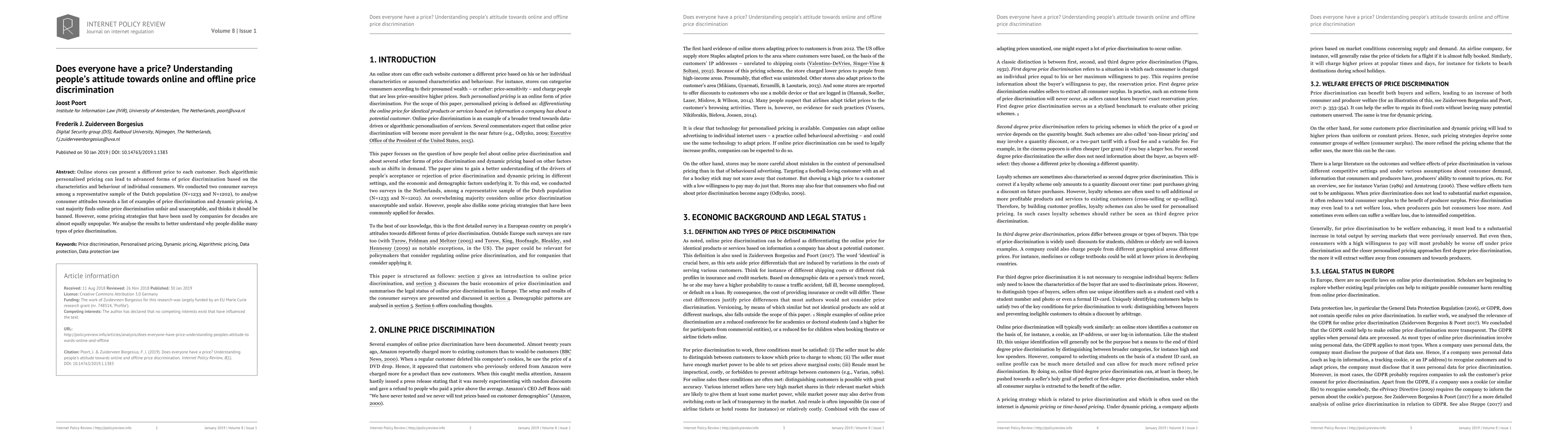 This work uniquely combines consumer survey data with economic theory to analyze the social acceptance of algorithmic price discrimination in the digital economy.