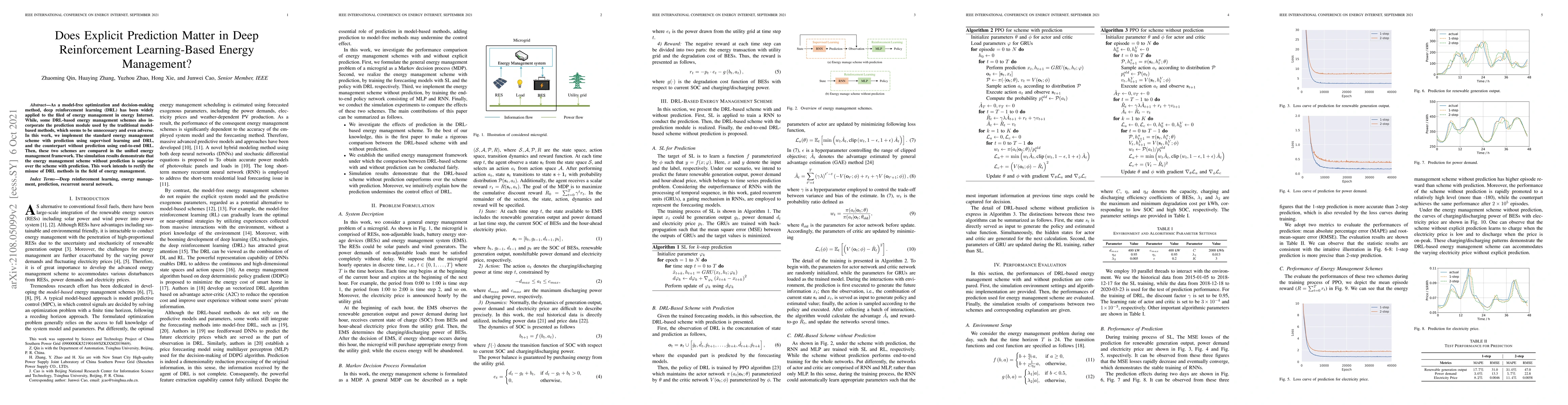 This paper investigates whether explicit prediction is beneficial in deep reinforcement learning (DRL) for energy management, finding that a DRL-based scheme without prediction outperforms one using prediction. The study aims to correct the overuse of prediction modules in DRL applications for energy management.