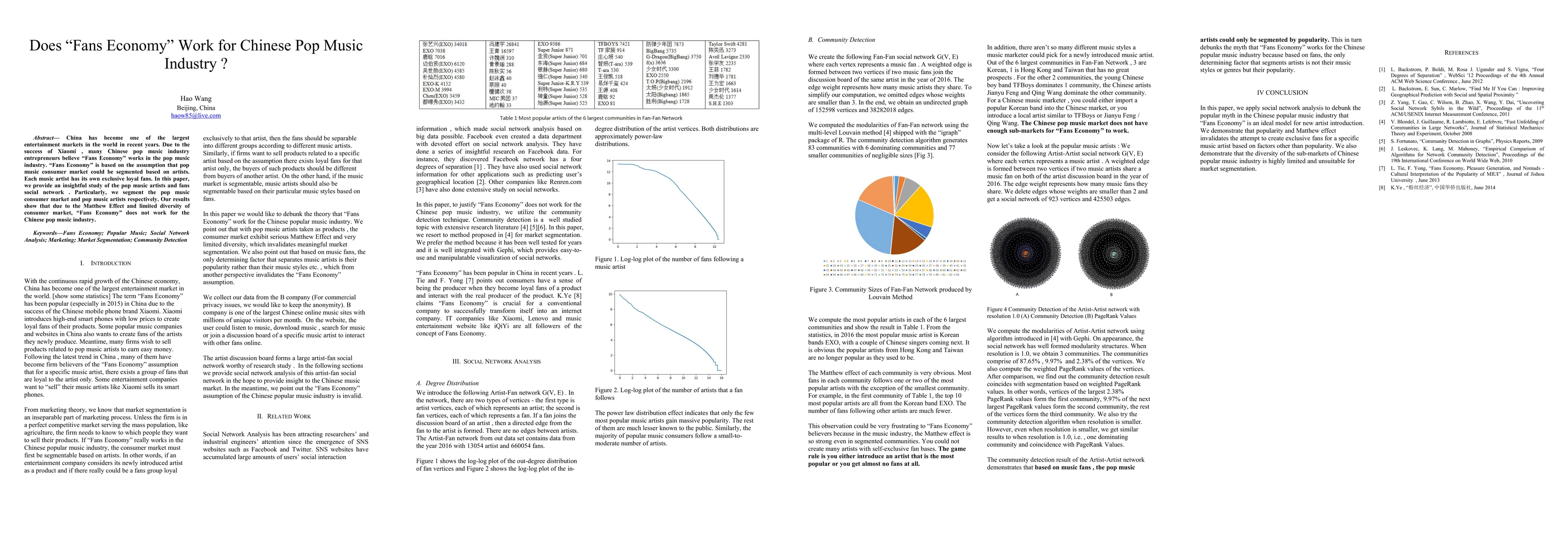 China has become one of the largest entertainment markets in the world in recent years. Due to the success of Xiaomi, many Chinese pop music industry entrepreneurs believe "Fans Economy" works in the pop music industry. "Fans Economy" is based on the assumption that pop music consumer market could be segmented based on artists. Each music artist has its own exclusive loyal fans. In this paper, we provide an insightful study of the pop music artists and fans social network. Particularly, we segment the pop music consumer market and pop music artists respectively. Our results show that due to the Matthew Effect and limited diversity of consumer market, "Fans Economy" does not work for the Chinese pop music industry.