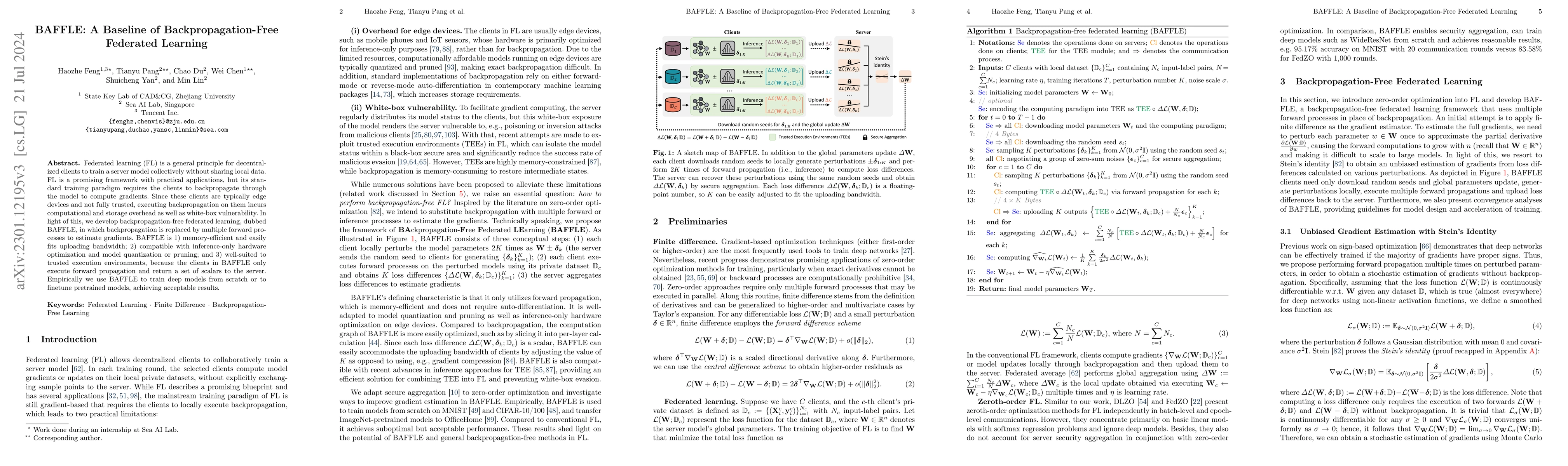 This paper proposes BAFFLE, a backpropagation-free federated learning method that replaces backpropagation with multiple forward processes to estimate gradients, addressing computational and security concerns in edge devices. BAFFLE is memory-efficient, compatible with hardware optimizations, and suitable for trusted environments, achieving acceptable performance in training and finetuning deep models.