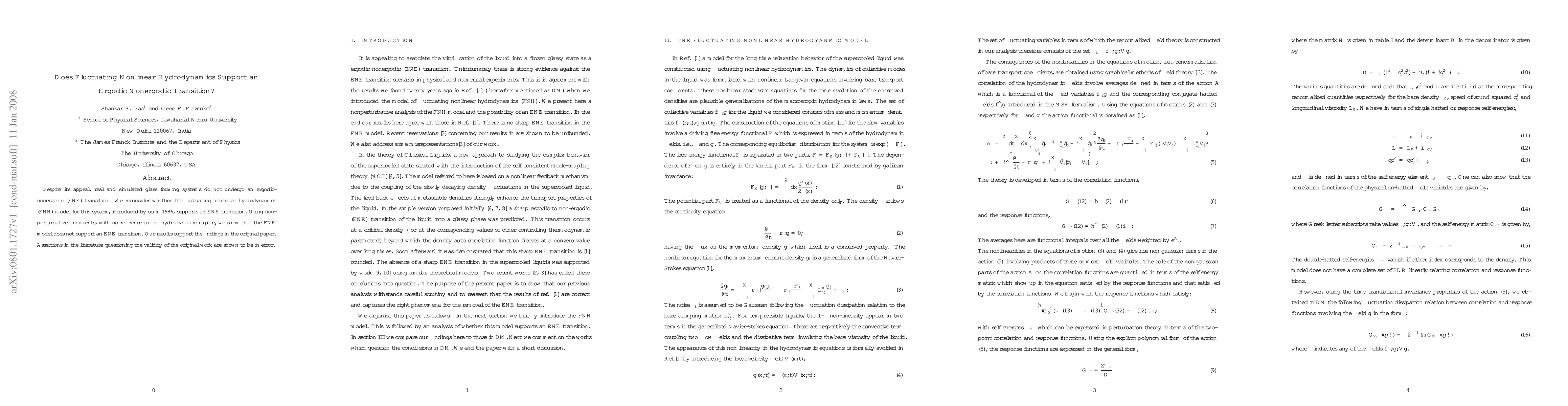 Despite its appeal, real and simulated glass forming systems do not undergo an ergodic-nonergodic (ENE) transition. We reconsider whether the fluctuating nonlinear hydrodynamics (FNH) model for this system, introduced by us in 1986, supports an ENE transition. Using nonperturbative arguments, with no reference to the hydrodynamic regime, we show that the FNH model does not support an ENE transition. Our results support the findings in the original paper. Assertions in the literature questioning the validity of the original work are shown to be in error.