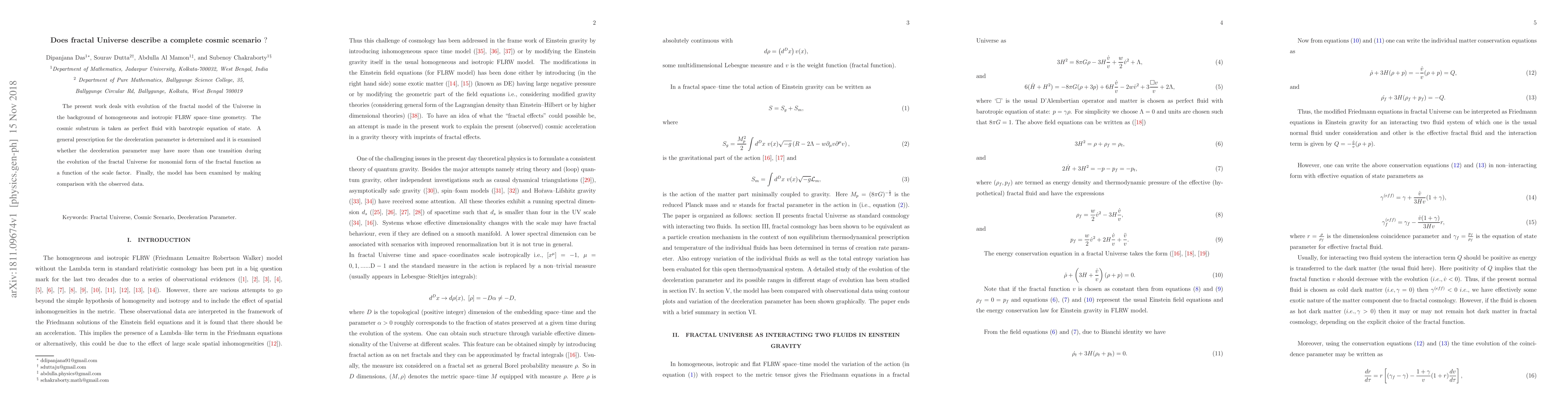 This paper explores the fractal model of the Universe within an FLRW space-time, analyzing its evolution and the possibility of multiple deceleration parameter transitions. The study concludes by comparing the fractal model's predictions with observational data.