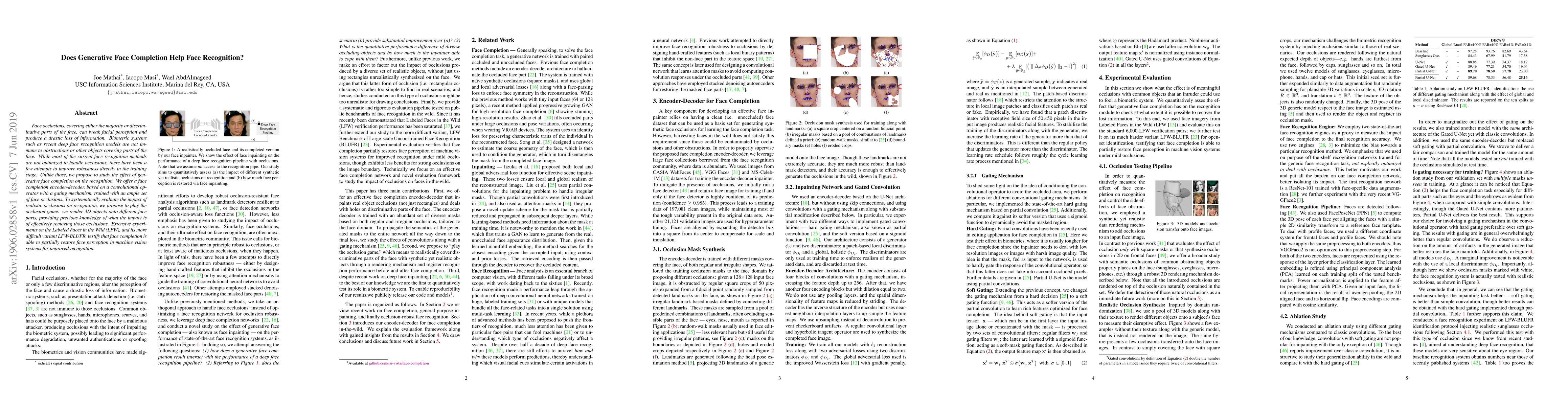 This paper investigates whether generative face completion techniques can enhance face recognition performance under occlusions. The proposed face completion model, trained on occluded faces, shows potential to restore lost facial information, thereby improving recognition accuracy, as demonstrated through experiments on LFW and LFW-BLUFR datasets.