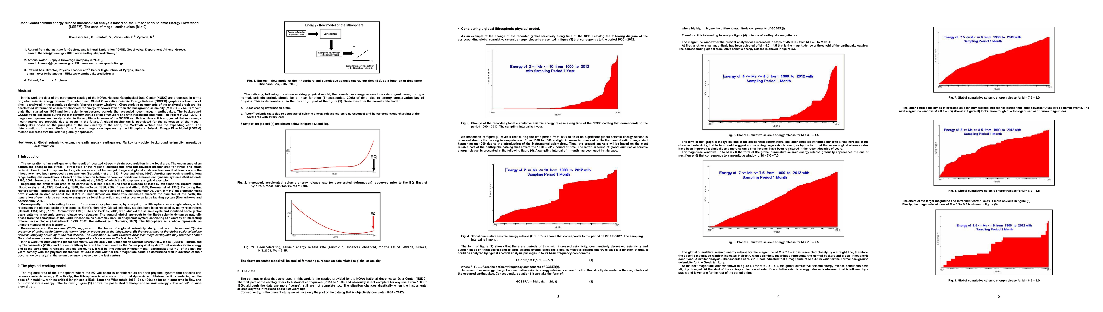 In this work the data of the earthquake catalog of the NOAA, National Geophysical Data Center (NGDC) are processed in terms of global seismic energy release. The determined Global Cumulative Seismic Energy Release (GCSER) graph as a function of time, is analyzed in the magnitude domain (discrete energy windows). Characteristic components of the analyzed graph are: its accelerated deformation character observed for energy windows lower than the background seismicity (M = 7.0 - 7.5), its lock state that started on 1923 and long seismic quiescence periods that preceded recent mega - earthquakes. The background GCSER value oscillates during the last century with a period of 60 years and with increasing amplitude. The recent (1952 - 2012) 5 mega - earthquakes are closely related to the amplitude increase of the GCSER oscillation. Hence, it is suggested that more mega - earthquakes are probable due to occur in the future. A global mechanism is postulated for the generation of the mega - earthquakes based on the principles of the non-linearity of the earth, the Markovitz wobble and the expanding earth. The determination of the magnitude of the 5 recent mega - earthquakes by the Lithospheric Seismic Energy Flow Model (LSEFM) method indicates that the latter is globally applicable. Key words: Global seismicity, expanding earth, mega - earthquakes, Markowitz wobble, background seismicity, magnitude determination
