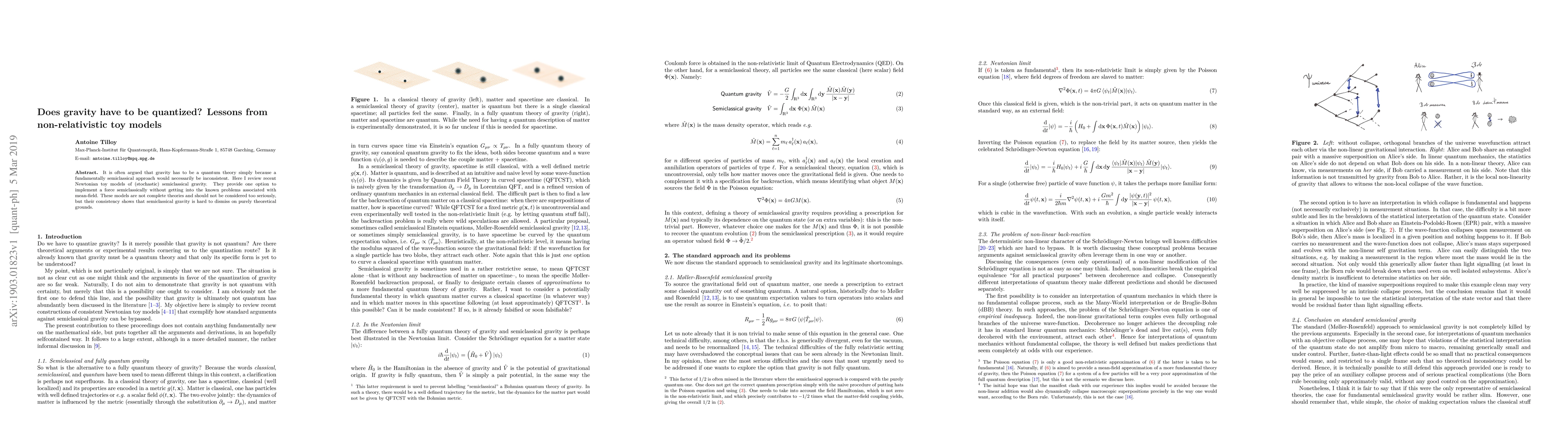 Summary: This paper reviews recent non-relativistic toy models of semiclassical gravity, demonstrating that semiclassical approaches can be consistent without the usual mean-field issues, suggesting that the necessity of quantizing gravity is not purely theoretical.