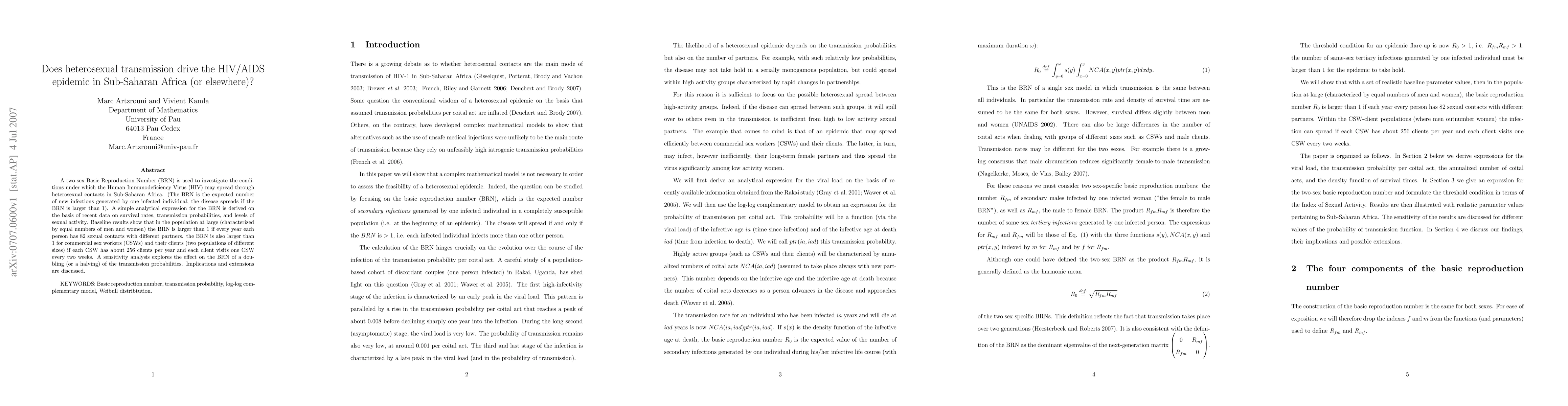 The study finds that heterosexual transmission can drive the HIV/AIDS epidemic in Sub-Saharan Africa if individuals have a high number of sexual contacts, and sensitivity analysis shows that even small changes in transmission probabilities can significantly impact the spread of the disease.