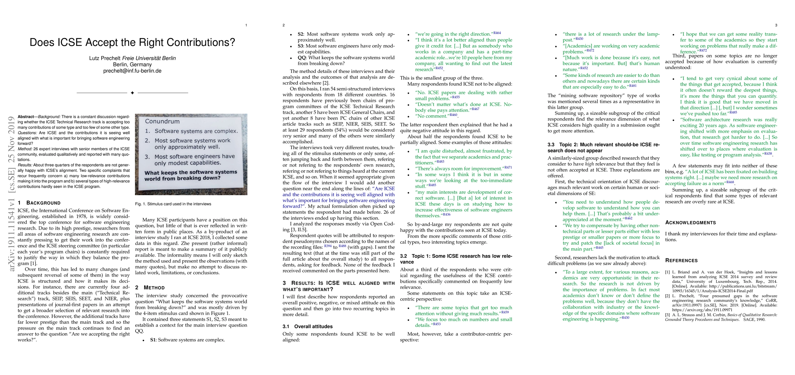 The study, comprising 26 expert interviews, reveals that 75% of respondents are dissatisfied with ICSE's alignment with crucial software engineering advancements. Key issues include excessive acceptance of low-relevance contributions and insufficient representation of high-relevance topics.