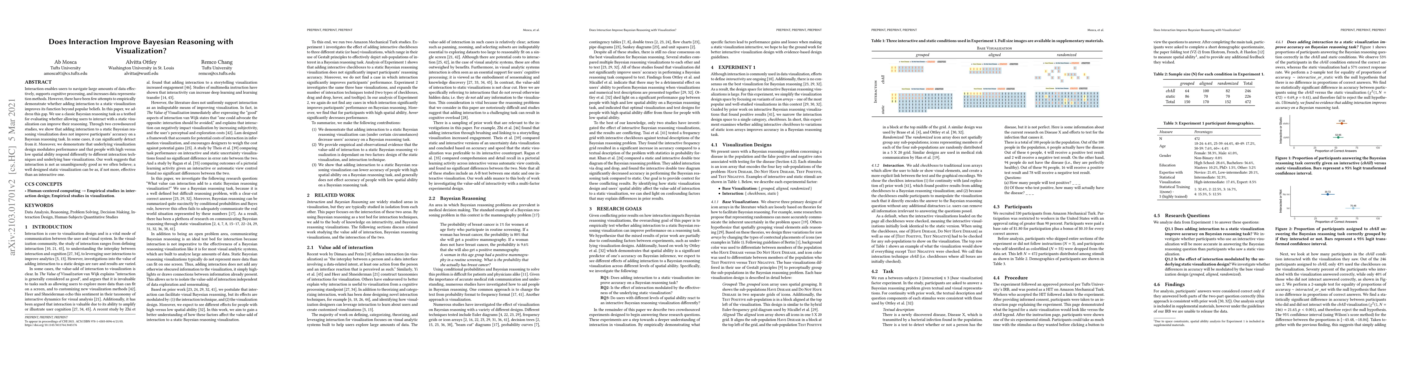 This study investigates whether interactive visualizations enhance Bayesian reasoning compared to static ones. Results from two crowdsourced experiments indicate that interaction does not improve reasoning accuracy and can even detract from it in some cases, suggesting that well-designed static visualizations may be equally or more effective than interactive ones.