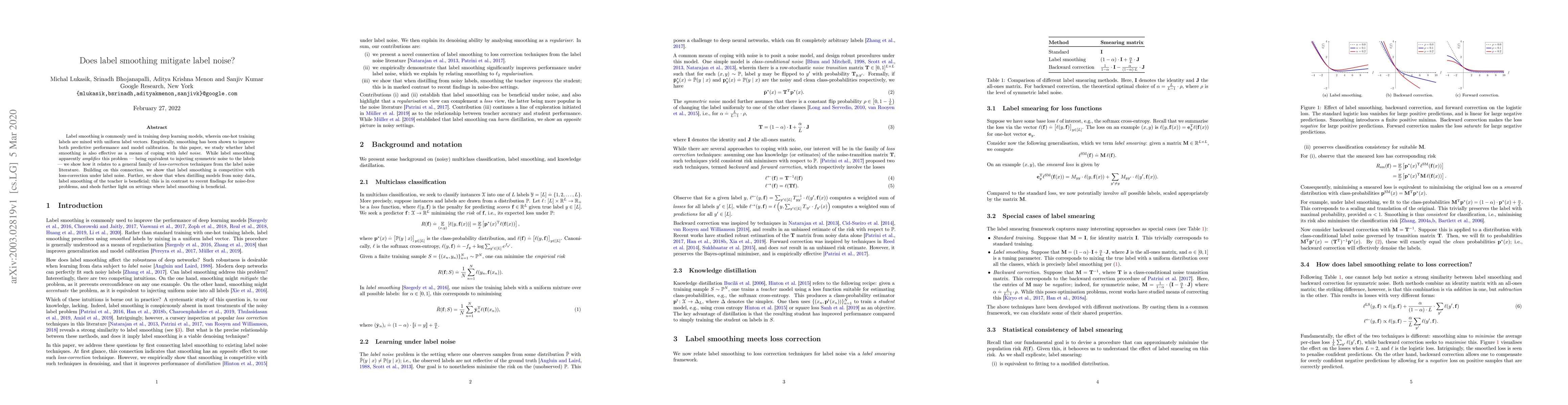 This paper investigates whether label smoothing, a technique that blends one-hot training labels with uniform vectors, can mitigate label noise. Despite amplifying label noise, the authors demonstrate that label smoothing is competitive with loss-correction techniques and beneficial when distilling models from noisy data.