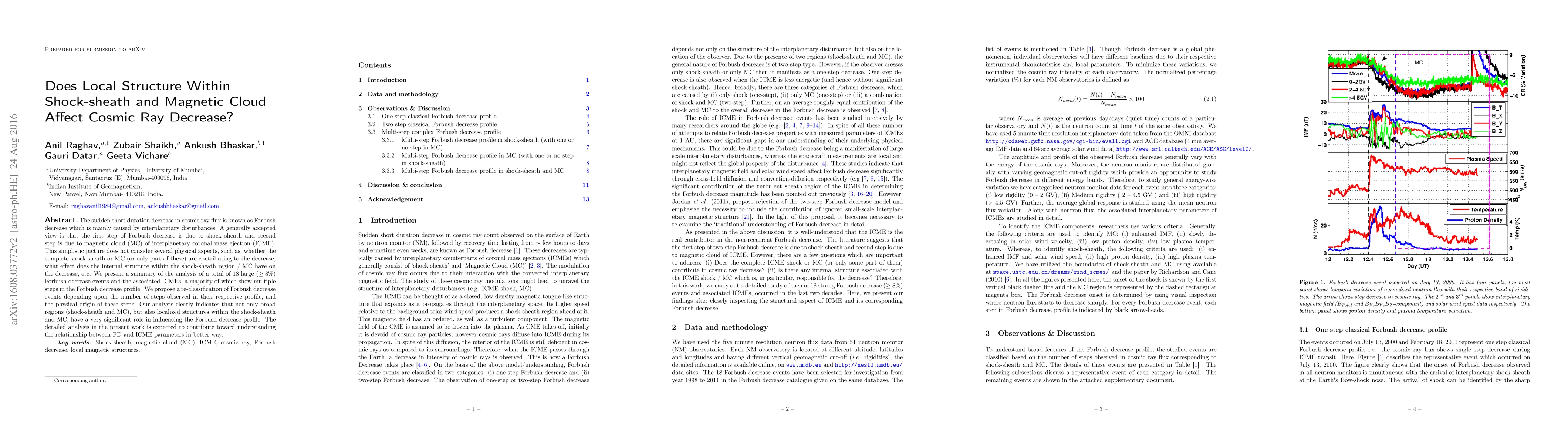 The sudden short duration decrease in cosmic ray flux is known as Forbush decrease which is mainly caused by interplanetary disturbances. Generally accepted view is that the first step of Forbush decrease is due to shock sheath and second step is due to Magnetic Cloud (MC) of Interplanetary Coronal Mass Ejection (ICME). However, there are few questions which needs detail investigation. (i) Does the complete (or part of) ICME shock or MC contribute in cosmic ray decrease? (ii) Is there any internal structure associated with the ICMEs shock/MC which precisely contribute in decrease? To address these questions we have studied a total of 18 large ($>=8 \%$) Forbush decrease events and associated ICMEs. Majority of events shows multi-steps Forbush decrease profile. This leads into re-classification of Forbush decrease events depending upon the number of steps observed in their respective profile. The present study clearly indicates that not only broad regions (shock-sheath and MC) contribute to Forbush decrease but also localized structures within shock-sheath and MC have very much significant importance in Forbush decrease profile.