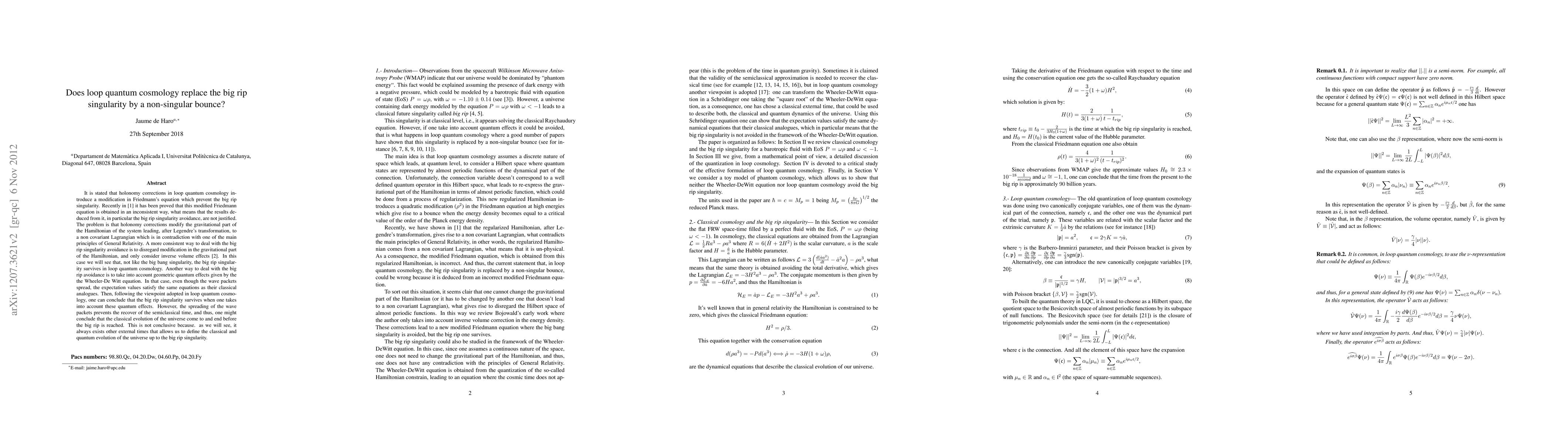 This paper examines whether loop quantum cosmology can replace the big rip singularity with a non-singular bounce. It finds that holonomy corrections do not effectively prevent the big rip singularity, as the modifications to the gravitational Hamiltonian lead to non-covariant Lagrangians, contradicting General Relativity principles.