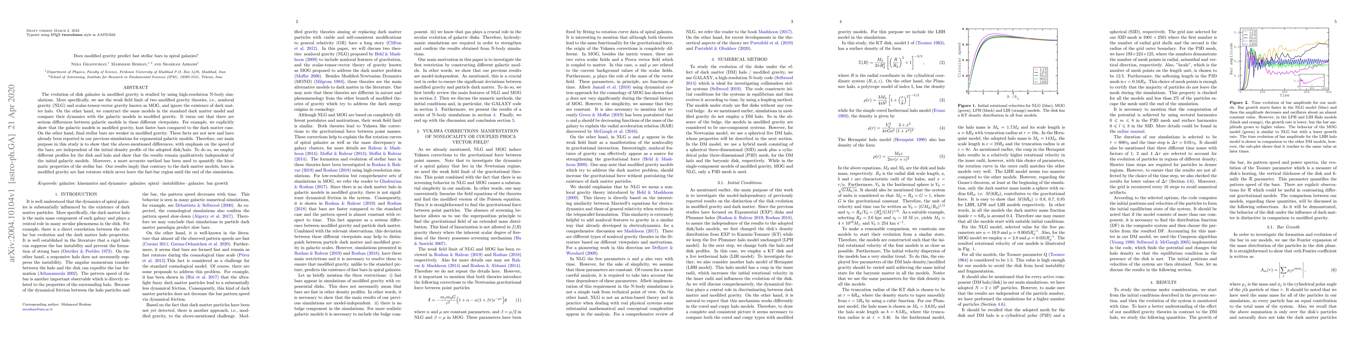 The evolution of disk galaxies in modified gravity is studied by using high-resolution N-body simulations. More specifically, we use the weak field limit of two modified gravity theories, i.e., nonlocal gravity (NLG) and scalar-tensor-vector gravity known as MOG, and ignore the existence of dark matter halo. On the other hand, we construct the same models in the standard dark matter model and compare their dynamics with the galactic models in modified gravity. It turns out that there are serious differences between galactic models in these different viewpoints. For example, we explicitly show that the galactic models in modified gravity, host faster bars compared to the dark matter case. On the other hand, final stellar bars are weaker in modified gravity. These facts are not new and have already been reported in our previous simulations for exponential galactic models. Therefore, our main purpose in this study is to show that the above-mentioned differences, with emphasis on the speed of the bars, are independent of the initial density profile of the adopted disk/halo. To do so, we employ different profiles for the disk and halo and show that the results remain qualitatively independent of the initial galactic models. Moreover, a more accurate method has been used to quantify the kinematic properties of the stellar bar. Our results imply that contrary to the dark matter models, bars in modified gravity are fast rotators which never leave the fast-bar region until the end of the simulation.