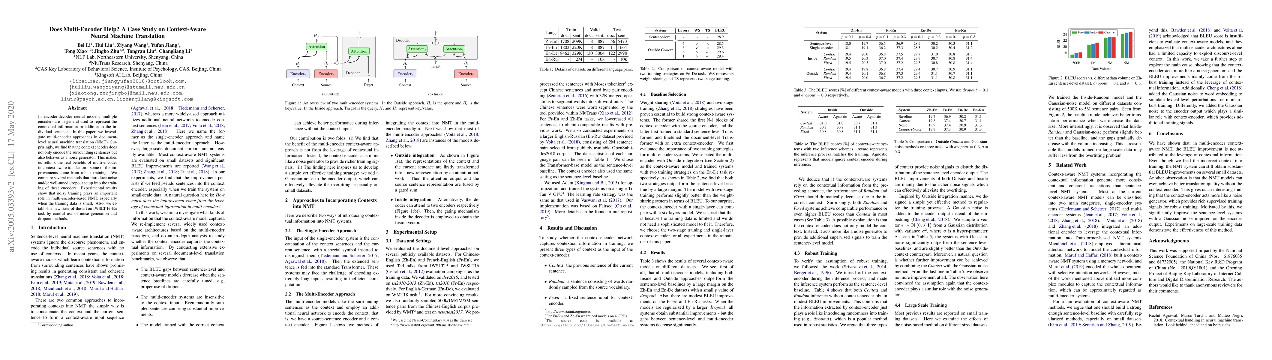 This paper examines multi-encoder approaches in document-level neural machine translation, finding that a context encoder can act as a noise generator rather than purely contextual information provider. The study concludes that improvements from multi-encoders often arise from robust training, particularly through noise generation, which leads to a new state-of-the-art on the IWSLT Fr-En task.