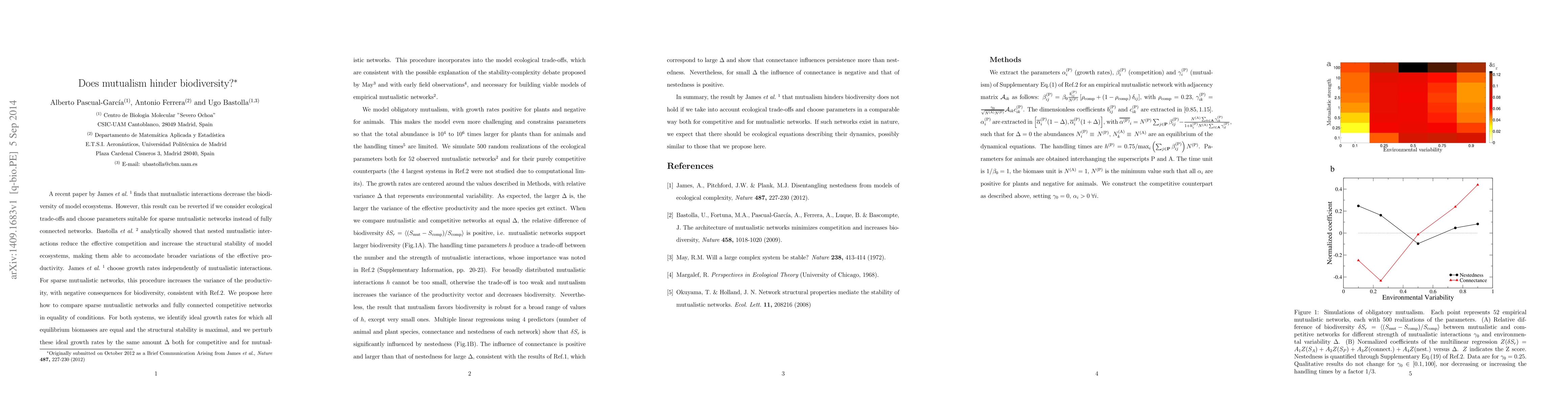A recent paper by James et al. finds that mutualistic interactions decrease the biodiversity of model ecosystems. However, this result can be reverted if we consider ecological trade-offs and choose parameters suitable for sparse mutualistic networks instead of fully connected networks.