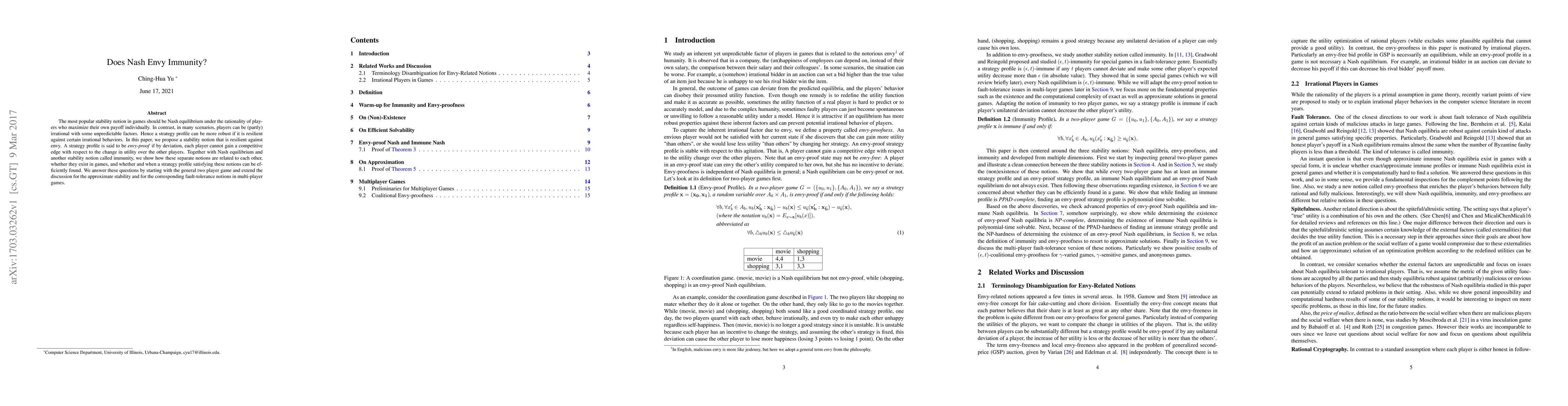 The most popular stability notion in games should be Nash equilibrium under the rationality of players who maximize their own payoff individually. In contrast, in many scenarios, players can be (partly) irrational with some unpredictable factors. Hence a strategy profile can be more robust if it is resilient against certain irrational behaviors. In this paper, we propose a stability notion that is resilient against envy. A strategy profile is said to be envy-proof if each player cannot gain a competitive edge with respect to the change in utility over the other players by deviation. Together with Nash equilibrium and another stability notion called immunity, we show how these separate notions are related to each other, whether they exist in games, and whether and when a strategy profile satisfying these notions can be efficiently found. We answer these questions by starting with the general two player game and extend the discussion for the approximate stability and for the corresponding fault-tolerance notions in multi-player games.