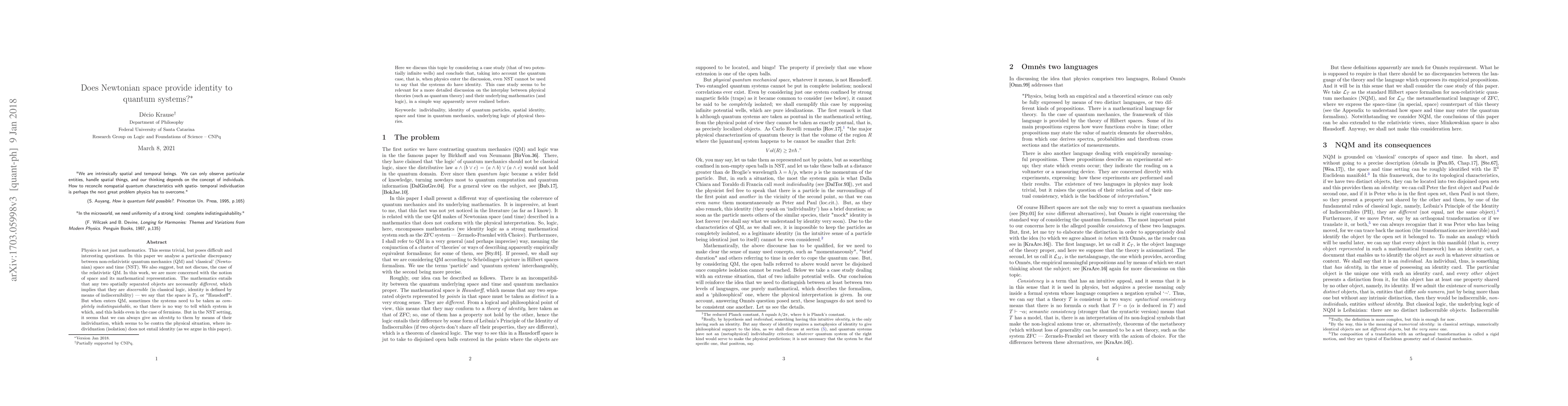 The work highlights the limitations of Newtonian space and time in providing identity to quantum systems