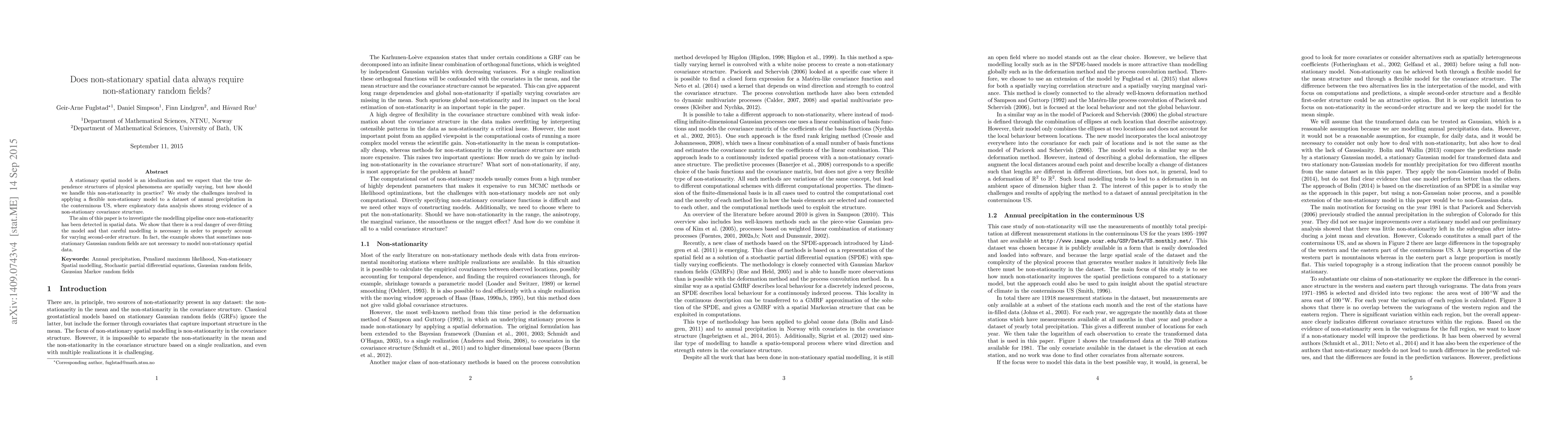 This paper examines the challenges of modeling non-stationary spatial data, using annual precipitation in the US as a case study. It highlights the risk of over-fitting when applying non-stationary models and concludes that non-stationary Gaussian random fields may not always be necessary for capturing non-stationary spatial patterns.