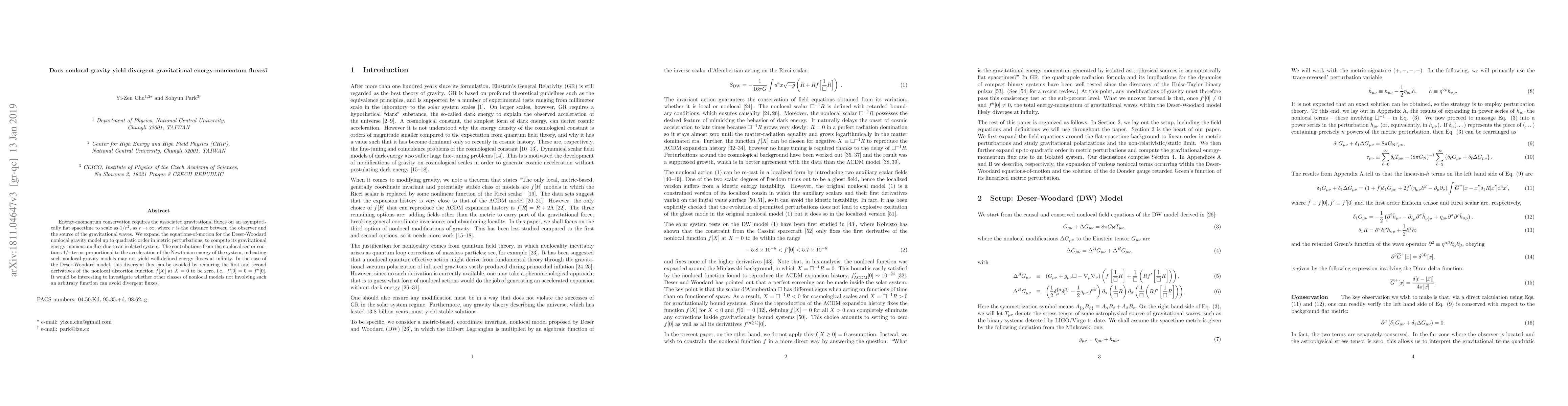 Energy-momentum conservation requires the associated gravitational fluxes on an asymptotically flat spacetime to scale as $1/r^2$, as $r \to \infty$, where $r$ is the distance between the observer and the source of the gravitational waves. We expand the equations-of-motion for the Deser-Woodard nonlocal gravity model up to quadratic order in metric perturbations, to compute its gravitational energy-momentum flux due to an isolated system. The contributions from the nonlocal sector contains $1/r$ terms proportional to the acceleration of the Newtonian energy of the system, indicating such nonlocal gravity models may not yield well-defined energy fluxes at infinity. In the case of the Deser-Woodard model, this divergent flux can be avoided by requiring the first and second derivatives of the nonlocal distortion function $f[X]$ at $X=0$ to be zero, i.e., $f'[0] = 0 = f''[0]$. It would be interesting to investigate whether other classes of nonlocal models not involving such an arbitrary function can avoid divergent fluxes.