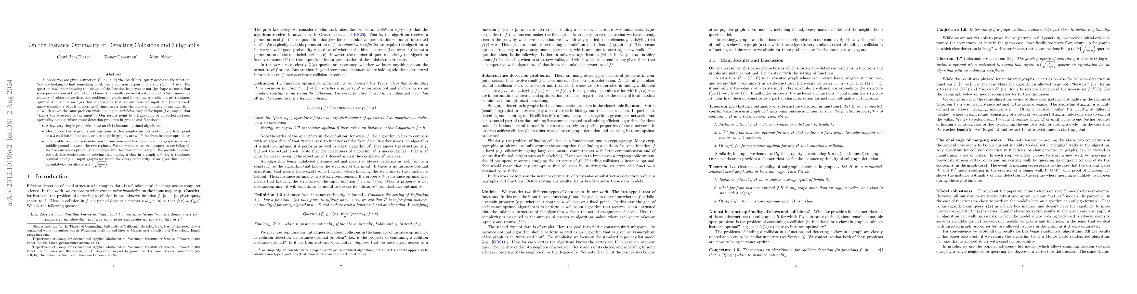 This paper investigates whether prior knowledge of the "shape" of a function aids in detecting local properties like collisions. It finds that while knowing the shape does not help detect collisions efficiently, it significantly reduces the query complexity for detecting other substructures like fixed points. The study concludes that collision detection is not instance optimal, suggesting a notable efficiency gap between algorithms with and without prior knowledge.