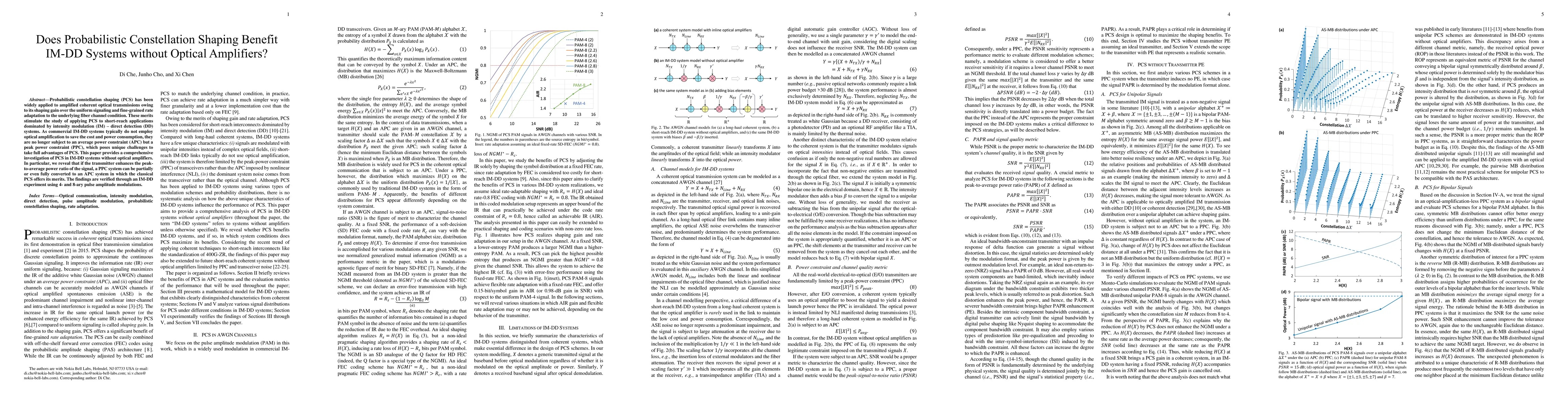 This paper investigates whether probabilistic constellation shaping (PCS) benefits intensity modulation direct detection (IM-DD) systems without optical amplifiers. The study finds that PCS can still offer advantages in IM-DD systems by adjusting the peak-to-average power ratio, effectively converting peak power constrained systems to average power constrained systems where PCS benefits are realized.