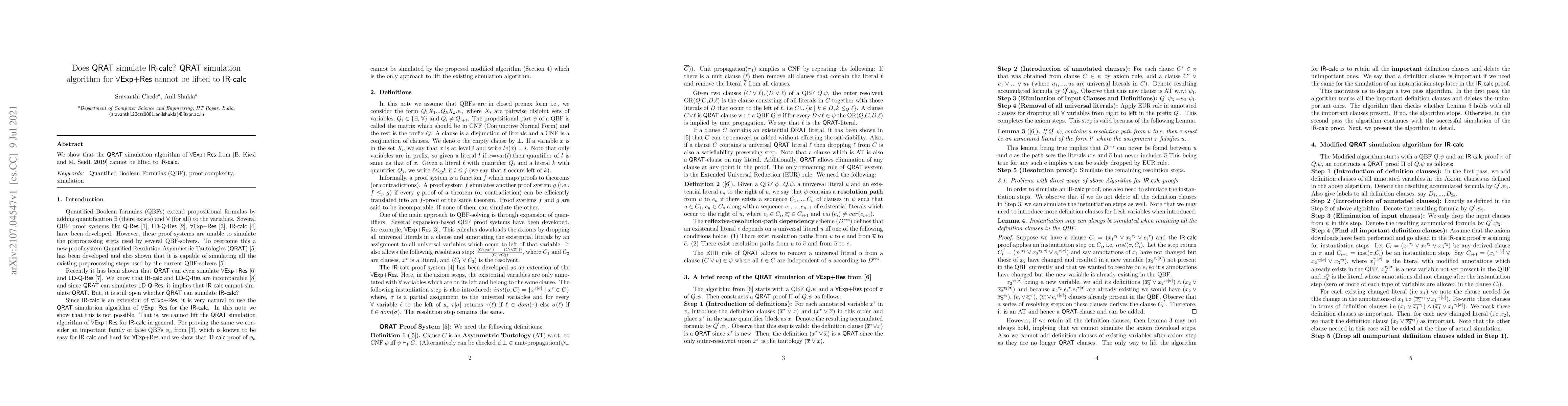 The research presents a novel approach to attempt QRAT simulation for IR-calc, highlighting its inability to simulate all IR-calc proofs and providing a counter-example to illustrate its limitations.