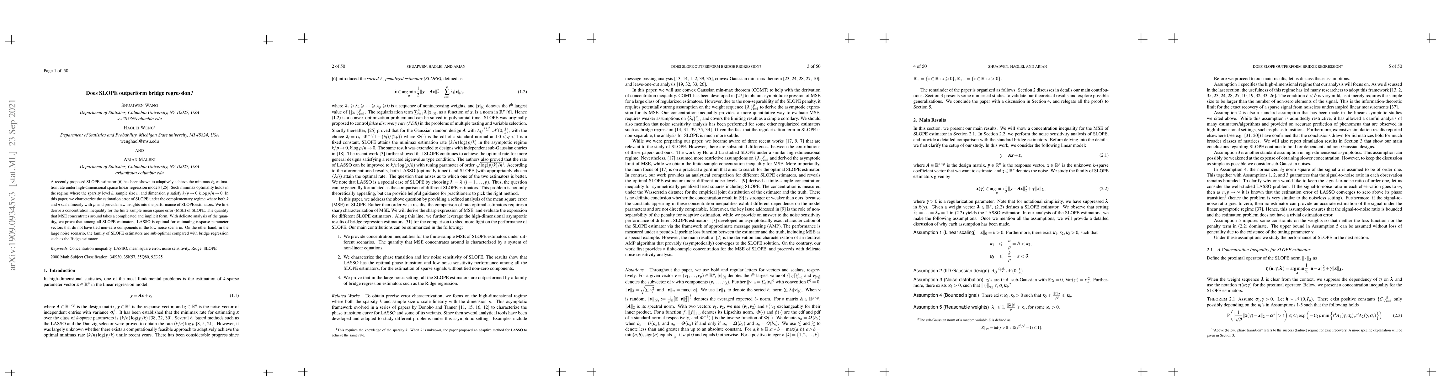 A study compares SLOPE to bridge regression in estimating sparse linear regression models; it finds that LASSO is optimal for low-noise scenarios but bridge regression outperforms SLOPE in high-noise cases.