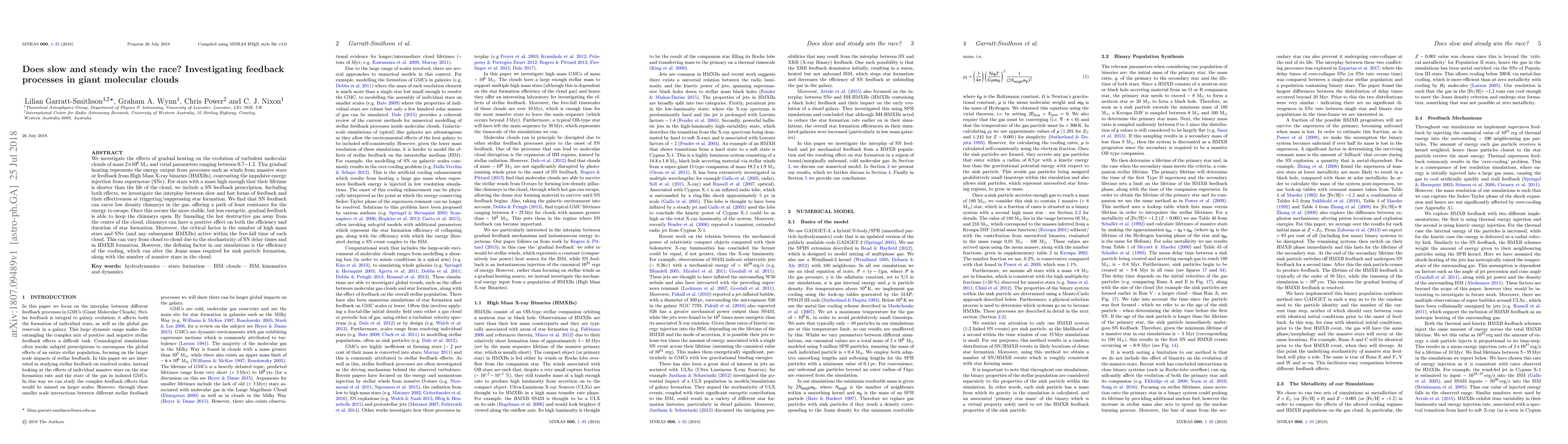 We investigate the effects of gradual heating on the evolution of turbulent molecular clouds of mass $2\times 10^6$ M$_\odot$ and virial parameters ranging between $0.7-1.2$. This gradual heating represents the energy output from processes such as winds from massive stars or feedback from High Mass X-ray binaries (HMXBs), contrasting the impulsive energy injection from supernovae (SNe). For stars with a mass high enough that their lifetime is shorter than the life of the cloud, we include a SN feedback prescription. Including both effects, we investigate the interplay between slow and fast forms of feedback and their effectiveness at triggering/suppressing star formation. We find that SN feedback can carve low density chimneys in the gas, offering a path of least resistance for the energy to escape. Once this occurs the more stable, but less energetic, gradual feedback is able to keep the chimneys open. By funneling the hot destructive gas away from the centre of the cloud, chimneys can have a positive effect on both the efficiency and duration of star formation. Moreover, the critical factor is the number of high mass stars and SNe (and any subsequent HMXBs) active within the free-fall time of each cloud. This can vary from cloud to cloud due to the stochasticity of SN delay times and in HMXB formation. However, the defining factor in our simulations is the efficiency of the cooling, which can alter the Jeans mass required for sink particle formation, along with the number of massive stars in the cloud.