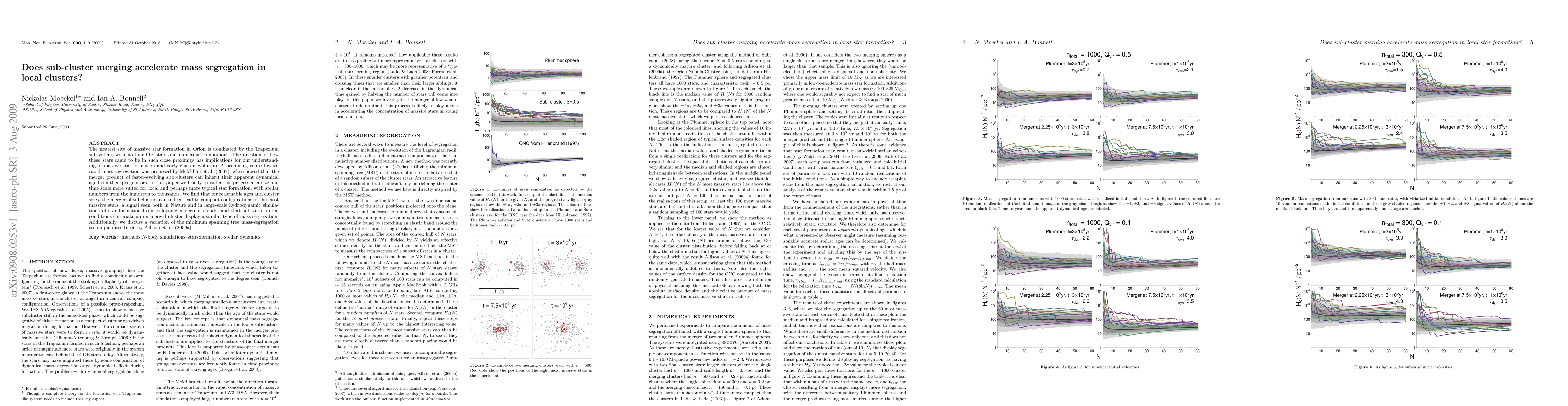 This paper explores whether merging sub-clusters can accelerate mass segregation in local star formation, finding that sub-cluster mergers can lead to compact configurations of massive stars, similar to observations in Orion and simulations. It also discusses a refined mass-segregation technique.