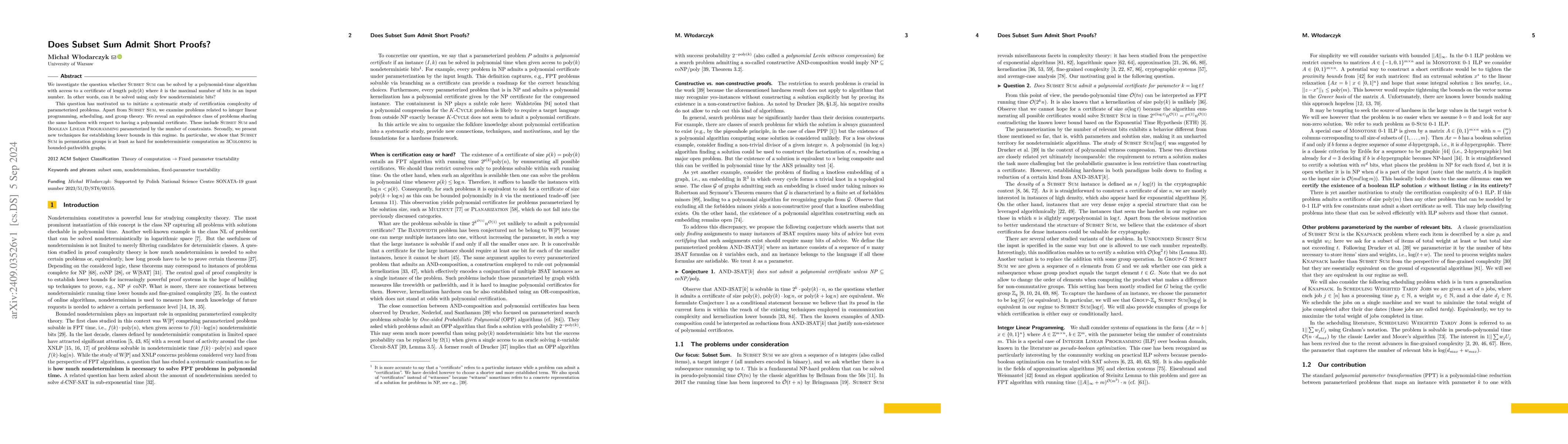 This paper explores whether the Subset Sum problem can be solved with a polynomial-time algorithm using certificates of polynomial size in relation to the input size. It also introduces new techniques for establishing lower bounds, revealing that Subset Sum and related problems share the same complexity regarding polynomial certificates.