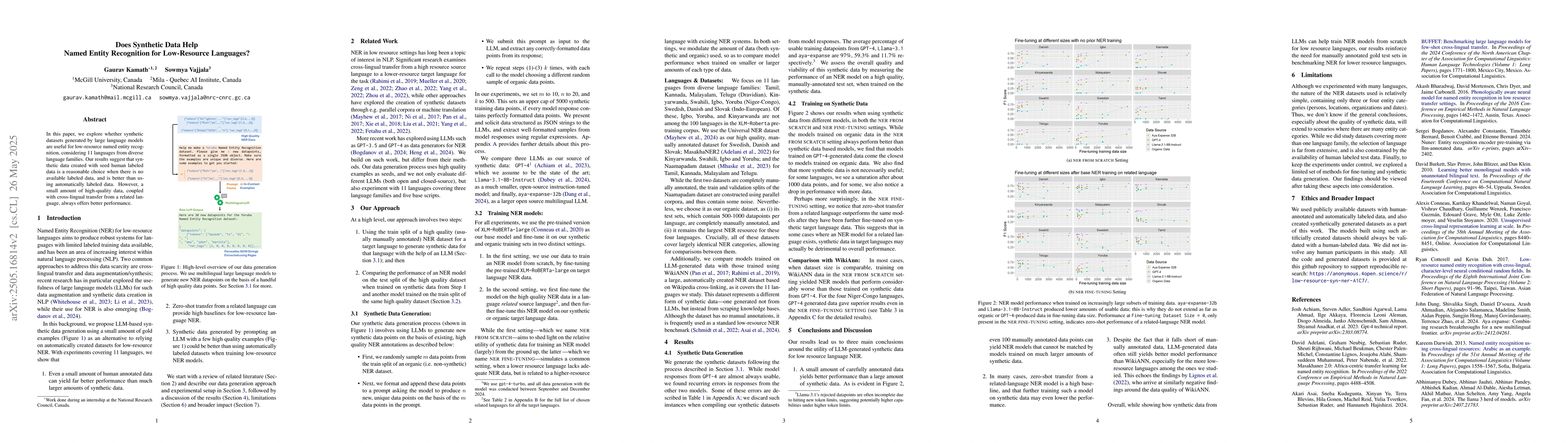 The paper presents an analysis of synthetic data utility in multilingual low-resource NER tasks, providing insights into its varying effectiveness across languages.