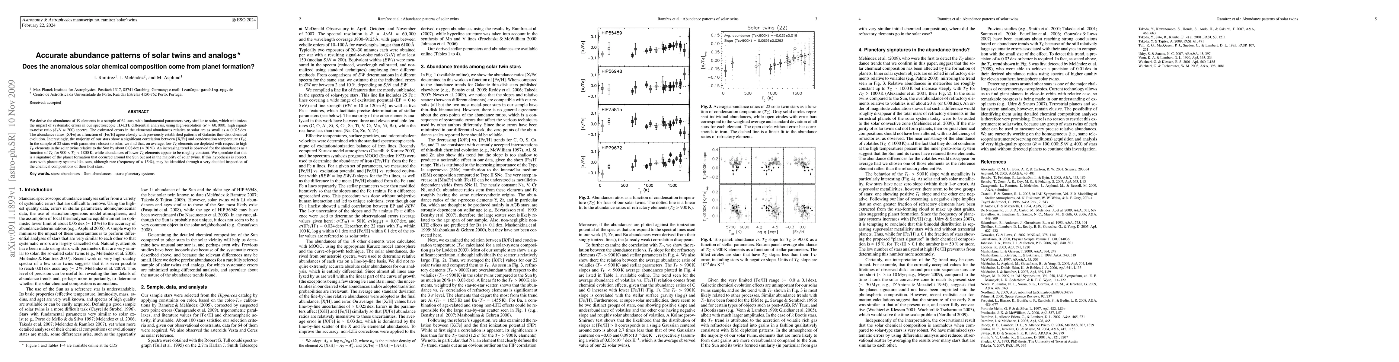 parameters closest to solar, we find that, on average, low Tc elements are