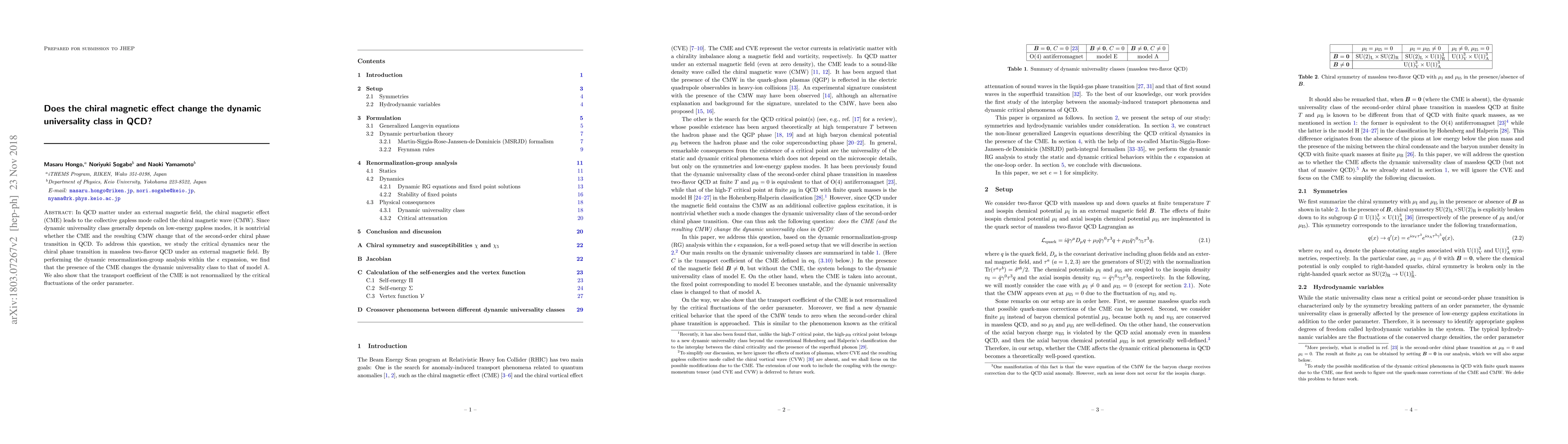 A study in QCD finds that the chiral magnetic effect changes the dynamic universality class from second-order to model A-like, and transport coefficients remain unchanged.