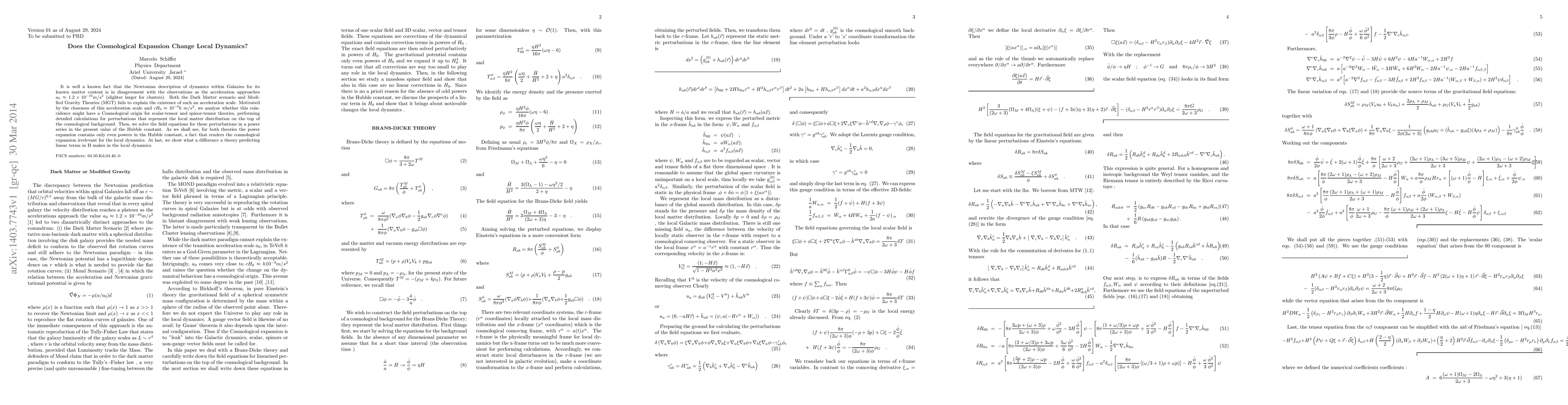 It is well a known fact that the Newtonian description of dynamics within Galaxies for its known matter content is in disagreement with the observations as the acceleration approaches $a_0 \approx 1.2 \times 10^{-10}m/s^2$ (slighter larger for clusters). Both the Dark Matter scenario and Modified Gravity Theories (MGT) fails to explain the existence of such an acceleration scale. Motivated by the closeness of this acceleration scale and $c H_0\approx 10^{-9} h$ $ m/s^2$, we analyse whether this coincidence might have a Cosmological origin for scalar-tensor and spinor-tensor theories, performing detailed calculations for perturbations that represent the local matter distribution on the top of the cosmological background. Then, we solve the field equations for these perturbations in a power series in the present value of the Hubble constant. As we shall see, for both theories the power expansion contains only even powers in the Hubble constant, a fact that renders the cosmological expansion irrelevant for the local dynamics. At last, we show what a difference a theory predicting linear terms in H makes in the local dynamics.