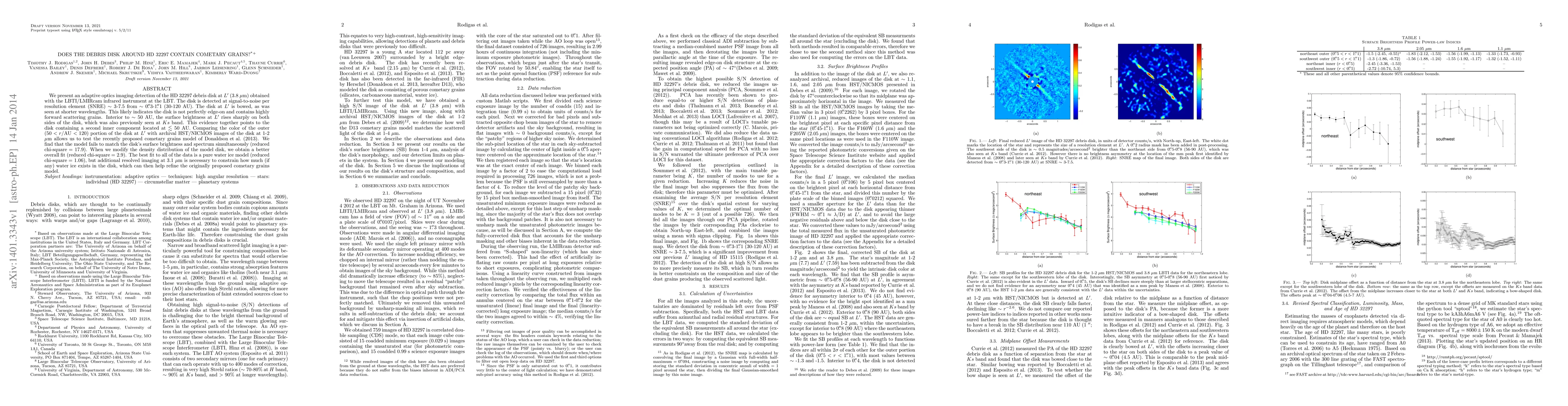 A study finds that a debris disk around HD 32297 likely contains cometary grains, but a new model that includes pure water ice provides a better fit to the data, suggesting the presence of icy materials in the disk.