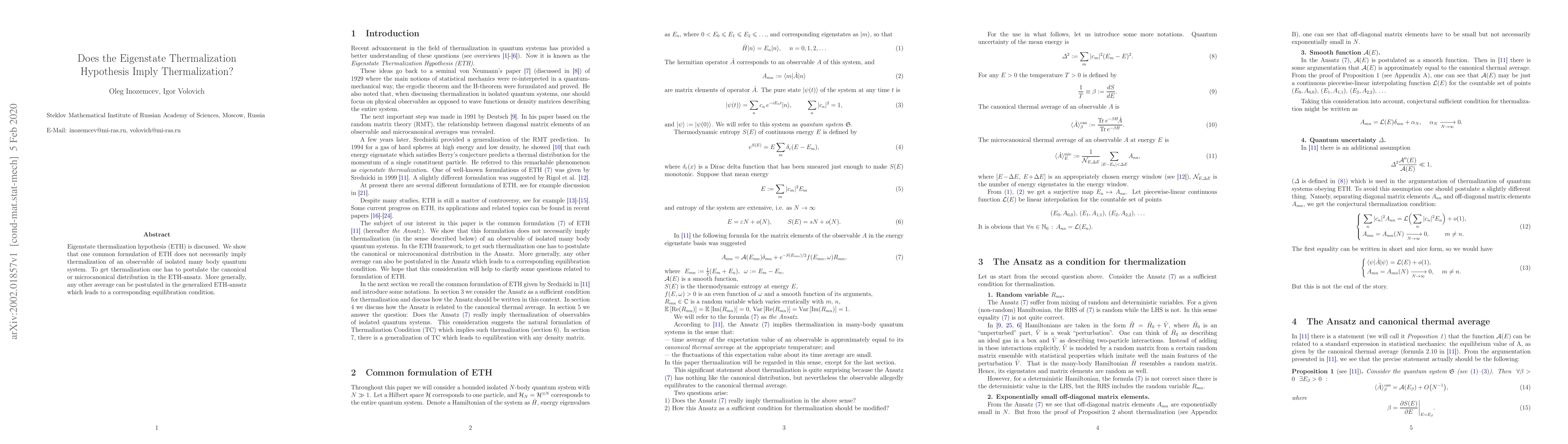 Eigenstate thermalization hypothesis (ETH) is discussed. We show that one common formulation of ETH does not necessarily imply thermalization of an observable of isolated many body quantum system. To get thermalization one has to postulate the canonical or microcanonical distribution in the ETH-ansatz. More generally, any other average can be postulated in the generalized ETH-ansatz which leads to a corresponding equilibration condition.