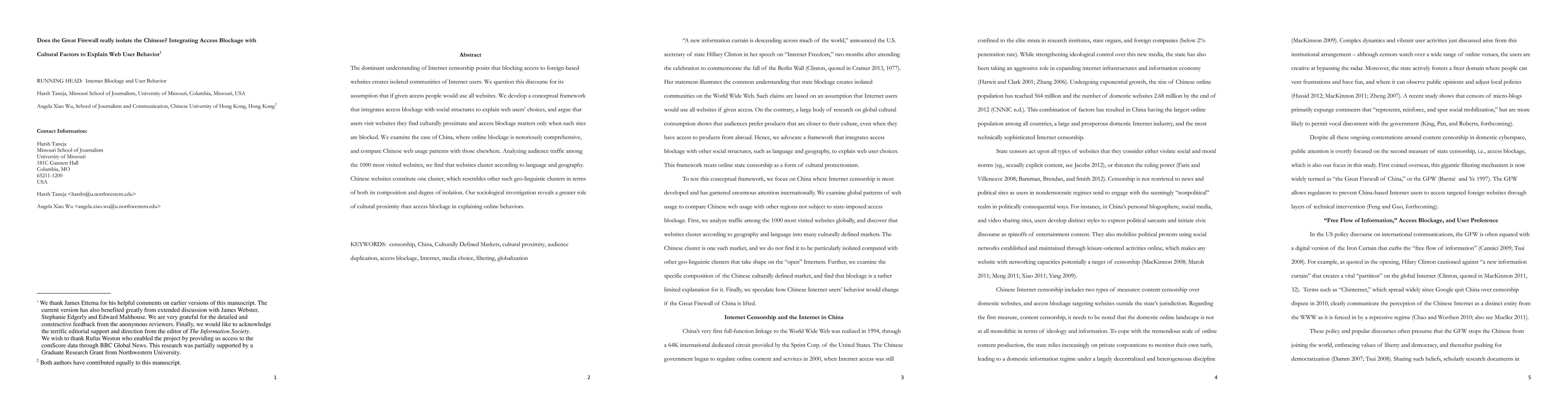The dominant understanding of Internet censorship posits that blocking access to foreign-based websites creates isolated communities of Internet users. We question this discourse for its assumption that if given access people would use all websites. We develop a conceptual framework that integrates access blockage with social structures to explain web users' choices, and argue that users visit websites they find culturally proximate and access blockage matters only when such sites are blocked. We examine the case of China, where online blockage is notoriously comprehensive, and compare Chinese web usage patterns with those elsewhere. Analyzing audience traffic among the 1000 most visited websites, we find that websites cluster according to language and geography. Chinese websites constitute one cluster, which resembles other such geo-linguistic clusters in terms of both its composition and degree of isolation. Our sociological investigation reveals a greater role of cultural proximity than access blockage in explaining online behaviors.