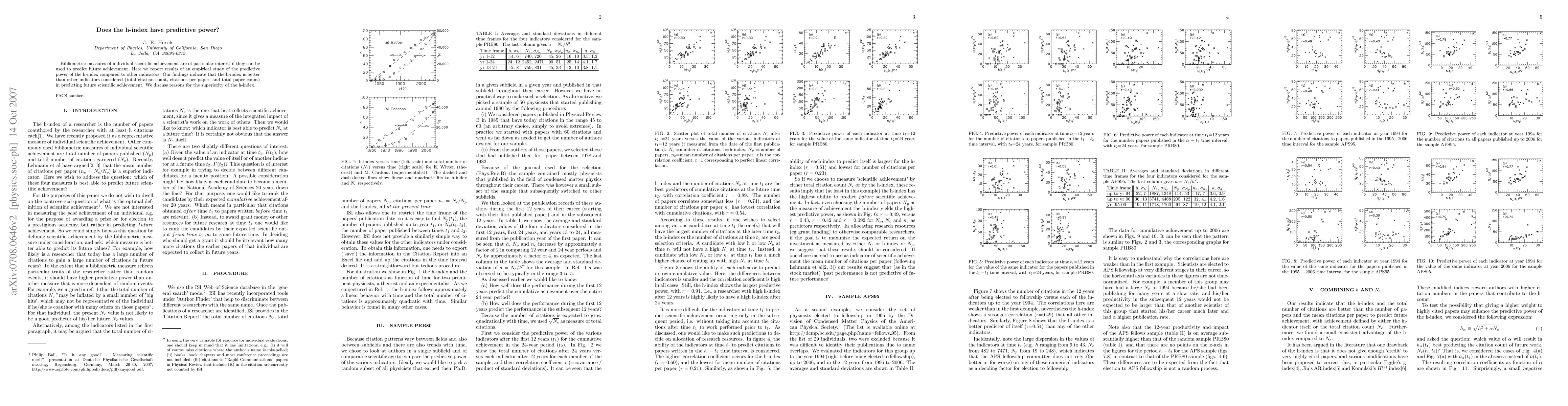 The h-index demonstrates superior predictive power for future scientific achievement compared to total citation count, citations per paper, and total paper count, according to an empirical study. The reasons for the h-index's effectiveness are also discussed.