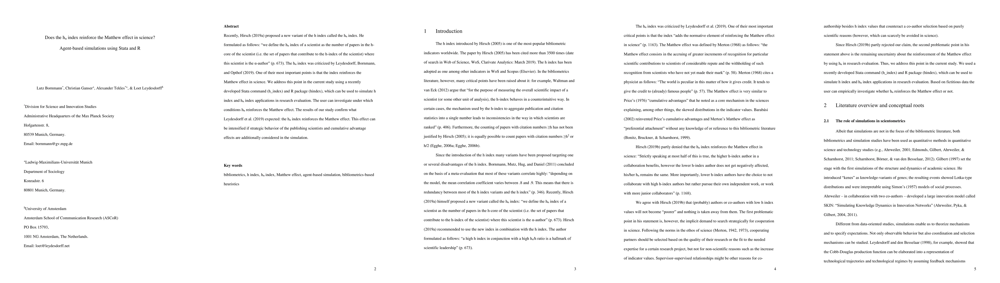 Recently, Hirsch (2019a) proposed a new variant of the h index called the $h_\alpha$ index. He formulated as follows: "we define the $h_\alpha$ index of a scientist as the number of papers in the h-core of the scientist (i.e. the set of papers that contribute to the h-index of the scientist) where this scientist is the $\alpha$-author" (p. 673). The $h_\alpha$ index was criticized by Leydesdorff, Bornmann, and Opthof (2019). One of their most important points is that the index reinforces the Matthew effect in science. We address this point in the current study using a recently developed Stata command (h_index) and R package (hindex), which can be used to simulate h index and $h_\alpha$index applications in research evaluation. The user can investigate under which conditions $h_\alpha$ reinforces the Matthew effect. The results of our study confirm what Leydesdorff et al. (2019) expected: the $h_\alpha$ index reinforces the Matthew effect. This effect can be intensified if strategic behavior of the publishing scientists and cumulative advantage effects are additionally considered in the simulation.