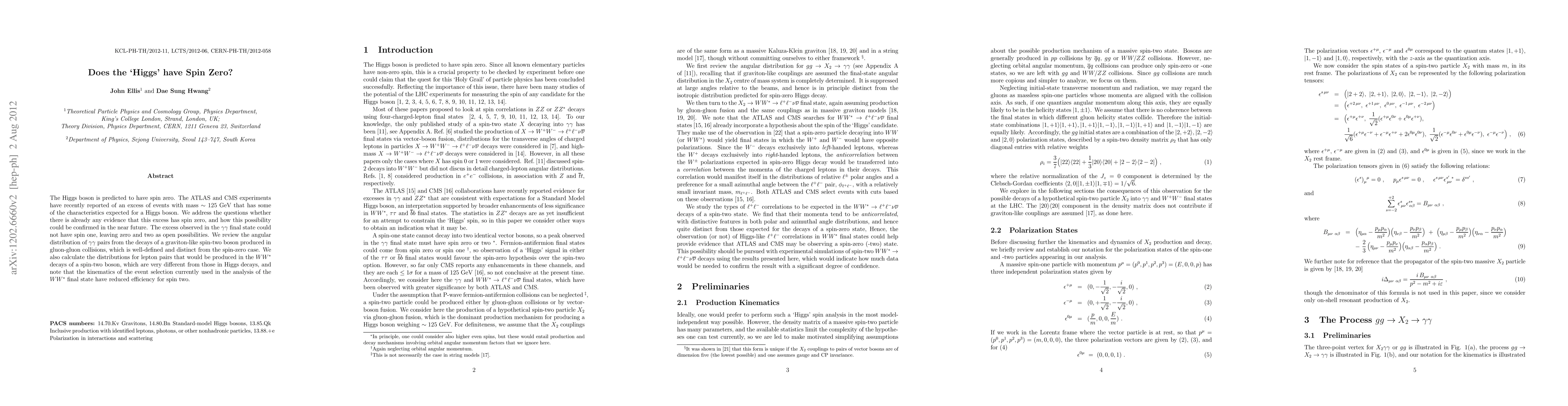 The Higgs boson is predicted to have spin zero. The ATLAS and CMS experiments have recently reported of an excess of events with mass ~ 125 GeV that has some of the characteristics expected for a Higgs boson. We address the questions whether there is already any evidence that this excess has spin zero, and how this possibility could be confirmed in the near future. The excess observed in the gamma gamma final state could not have spin one, leaving zero and two as open possibilities. We calculate the angular distribution of gamma gamma pairs from the decays of a spin-two boson produced in gluon-gluon collisions, showing that is unique and distinct from the spin-zero case. We also calculate the distributions for lepton pairs that would be produced in the W W* decays of a spin-two boson, which are very different from those in Higgs decays, and note that the kinematics of the event selection used to produce the excess observed in the W W* final state have reduced efficiency for spin two.