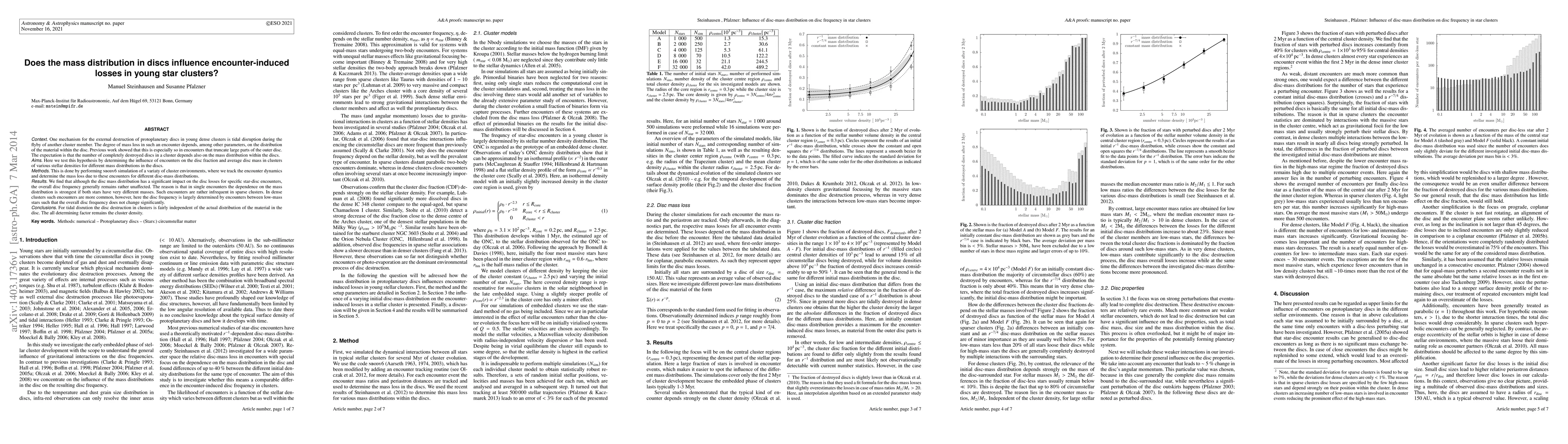 A study found that the mass distribution in protoplanetary discs affects tidal disruption during star-club interactions, but not overall disc frequency or average disc mass in dense clusters.