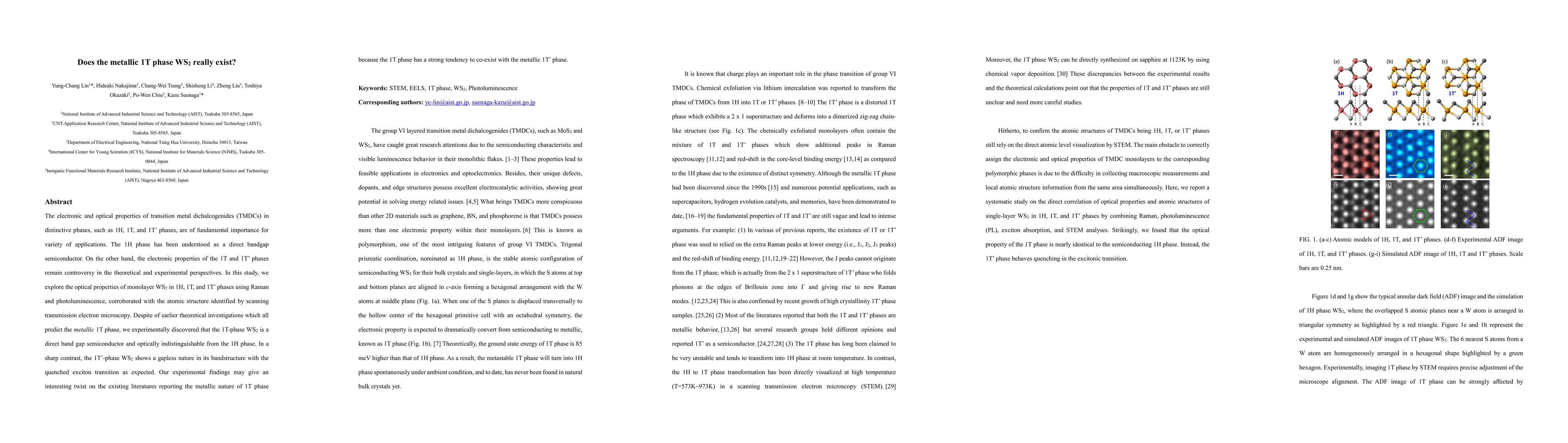 This study investigates the optical properties of monolayer WS2 in 1H, 1T, and 1T' phases, revealing that the 1T-phase WS2 is a direct bandgap semiconductor, contrary to theoretical predictions of its metallic nature, while the 1T'-phase shows a gapless band structure.
