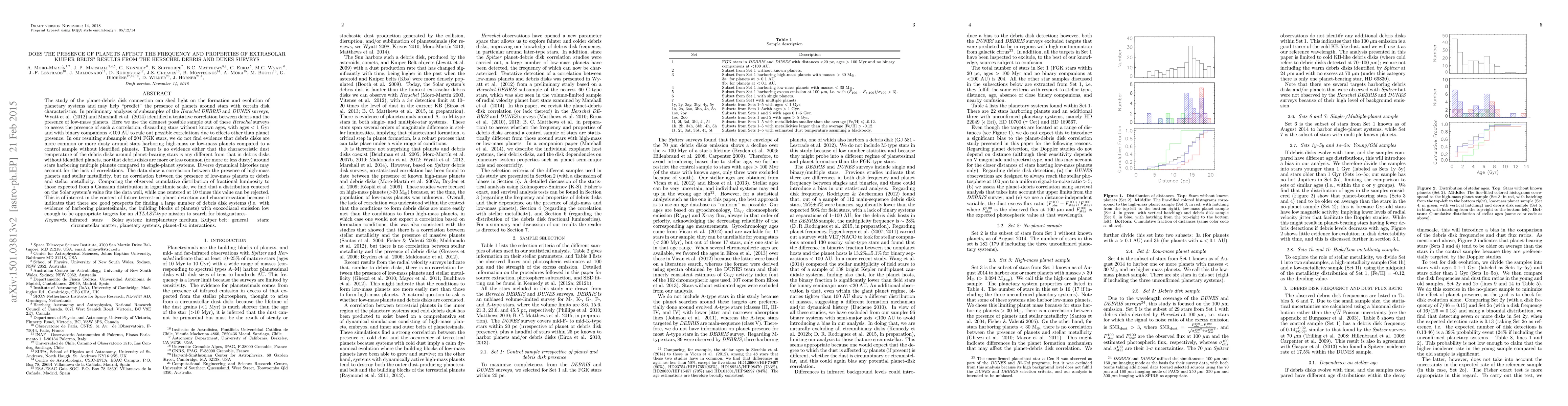 This study investigates whether the presence of planets influences the frequency and properties of extrasolar Kuiper Belts using data from the Herschel DEBRIS and DUNES surveys. Despite identifying a tentative correlation between debris and low-mass planets in preliminary analyses, the refined sample of 204 FGK stars shows no significant correlation between debris disks and the presence of planets, suggesting diverse dynamical histories may be at play.