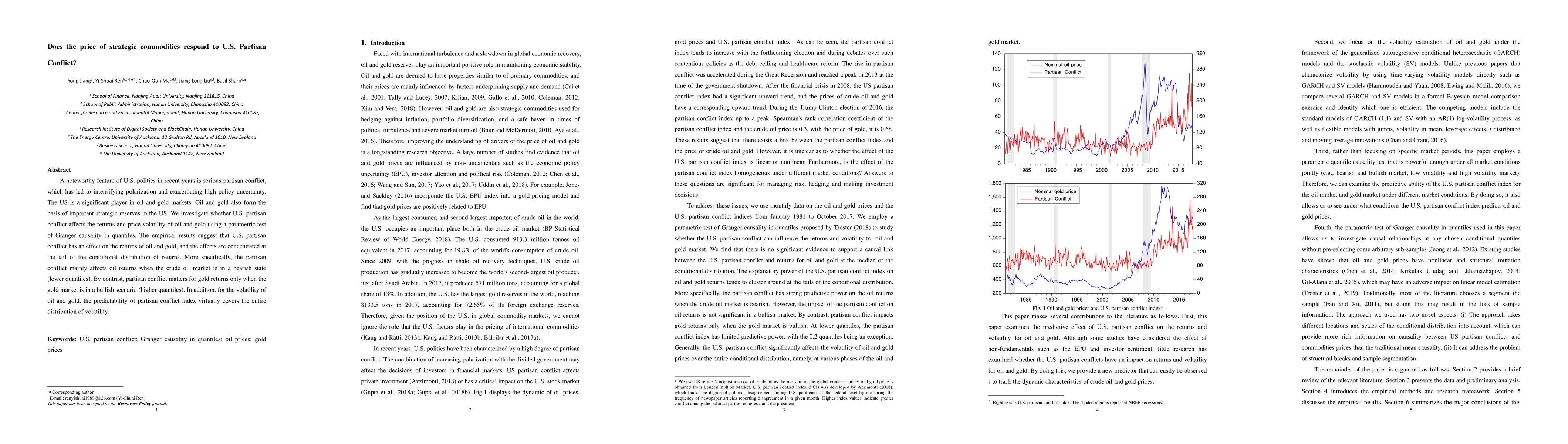 US partisan conflict affects oil and gold prices, with significant effects on oil returns during bearish states and gold returns during bullish states.