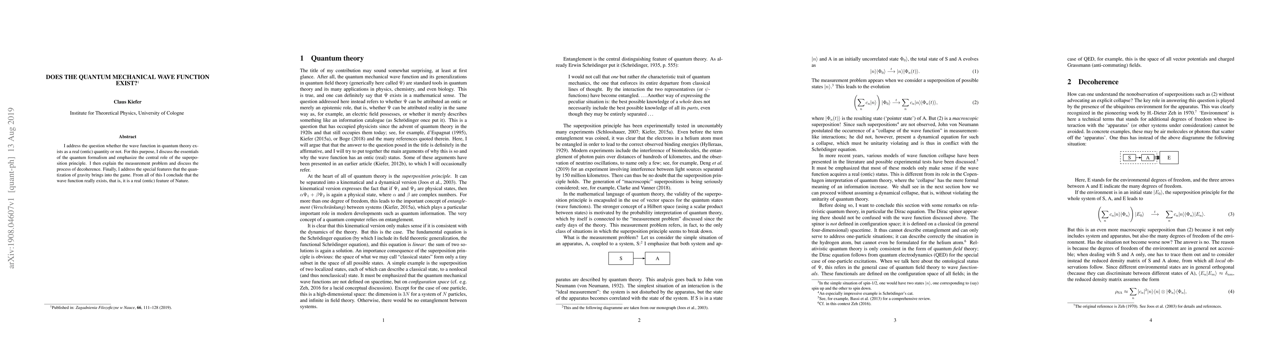 I address the question whether the wave function in quantum theory exists as a real (ontic) quantity or not. For this purpose, I discuss the essentials of the quantum formalism and emphasize the central role of the superposition principle. I then explain the measurement problem and discuss the process of decoherence. Finally, I address the special features that the quantization of gravity brings into the game. From all of this I conclude that the wave function really exists, that is, it is a real (ontic) feature of Nature.