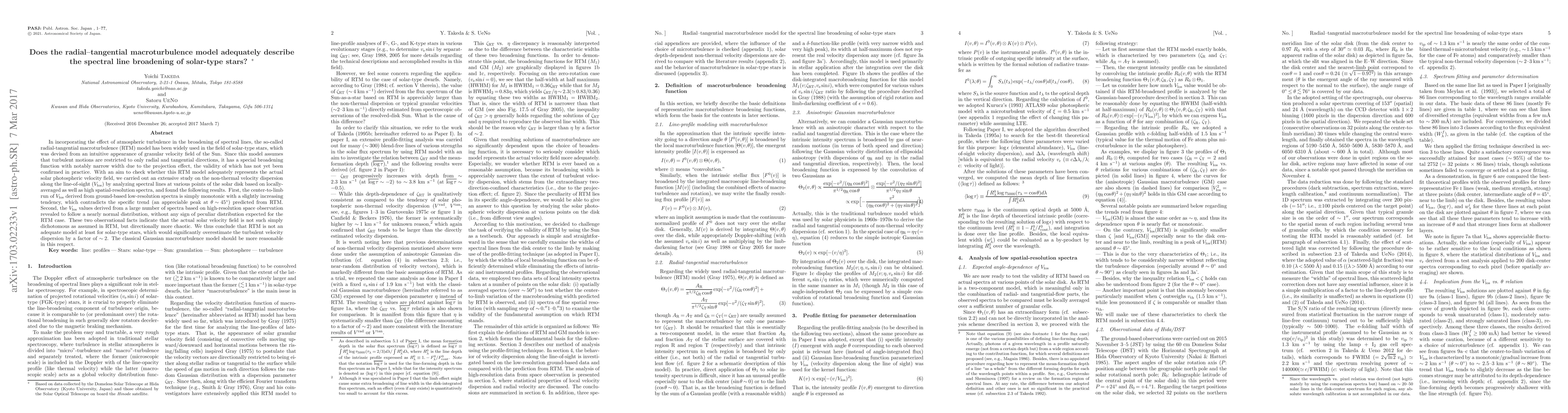 In incorporating the effect of atmospheric turbulence in the broadening of spectral lines, the so-called radial-tangential macroturbulence (RTM) model has been widely used in the field of solar-type stars, which was devised from an intuitive appearance of granular velocity field of the Sun. Since this model assumes that turbulent motions are restricted to only radial and tangential directions, it has a special broadening function with notably narrow width due to the projection effect, the validity of which has not yet been confirmed in practice. With an aim to check whether this RTM model adequately represents the actual solar photospheric velocity field, we carried out an extensive study on the non-thermal velocity dispersion along the line-of-sight (V_los) by analyzing spectral lines at various points of the solar disk based on locally-averaged as well as high spatial-resolution spectra, and found the following results. First, the center-to-limb run of V_los derived from ground-based low-resolution spectra is simply monotonic with a slightly increasing tendency, which contradicts the specific trend (an appreciable peak at theta~45 deg) predicted from RTM. Second, the V_los values derived from a large number of spectra based on high-resolution space observation revealed to follow a nearly normal distribution, without any sign of peculiar distribution expected for the RTM case. These two observational facts indicate that the actual solar velocity field is not such simply dichotomous as assumed in RTM, but directionally more chaotic. We thus conclude that RTM is not an adequate model at least for solar-type stars, which would significantly overestimate the turbulent velocity dispersion by a factor of ~2. The classical Gaussian macroturbulence model should be more reasonable in this respect.